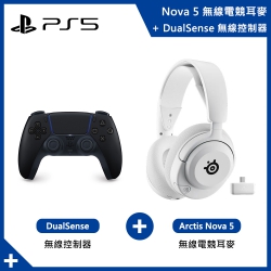 【組合商品】PS5 無線控制器/午夜黑 + Nova 5 無線電競白色耳麥