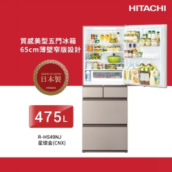 【HITACHI 日立】RHS49NJ-CNX 475L變頻五門冰箱 星燦金|含基本安裝