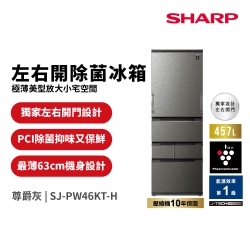 【SHARP 夏普】SJ-PW46KT-H 457L 變頻五門冰箱 尊爵灰|含基本安裝