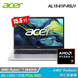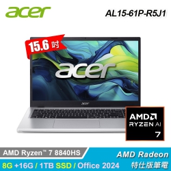 【Acer 宏碁】AL15-61P-R5J1 15.6吋 R7 特仕版筆電 銀色|升24G/Office 2024