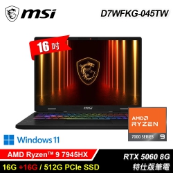 【MSI 微星】D7WFKG-045TW 16吋 R9 RTX5060 特仕版筆電|升32G