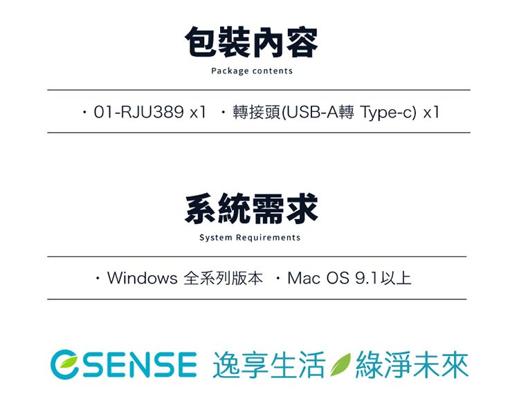 ESENSE 逸盛|USB3.0轉RJ45 轉接器