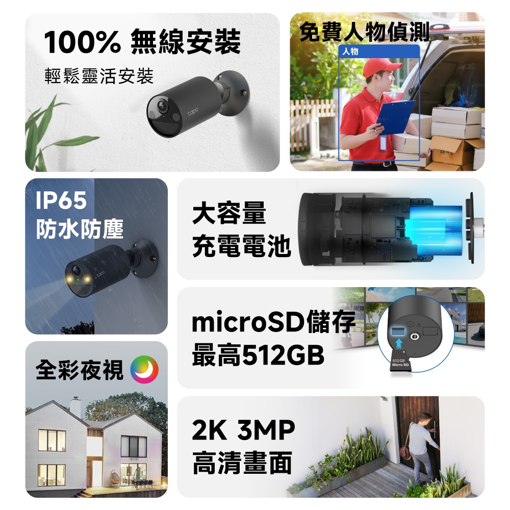 • 特色:3MP (2304 × 1296 px) 戶外電池式WiFi攝影機