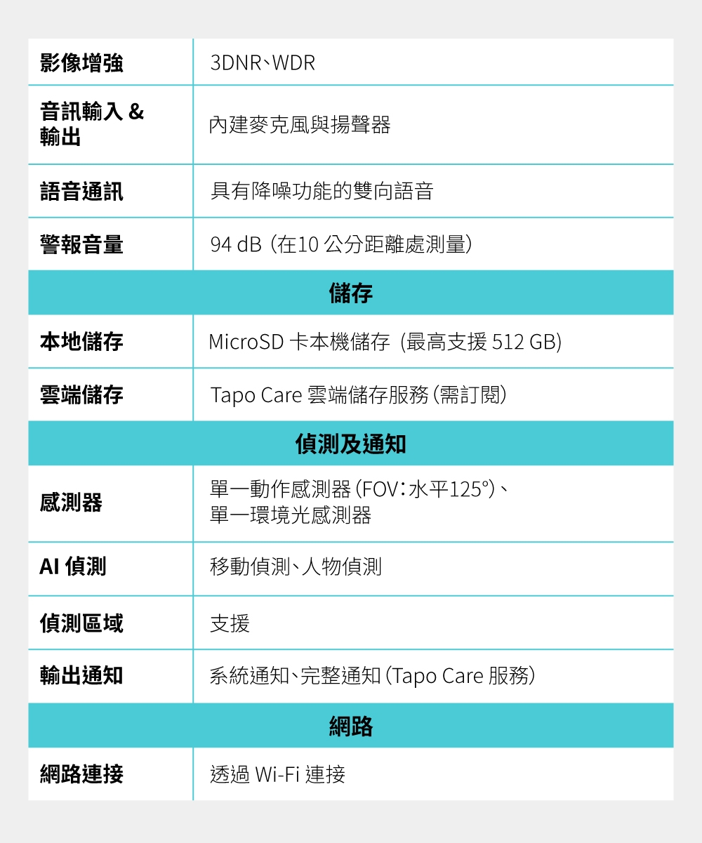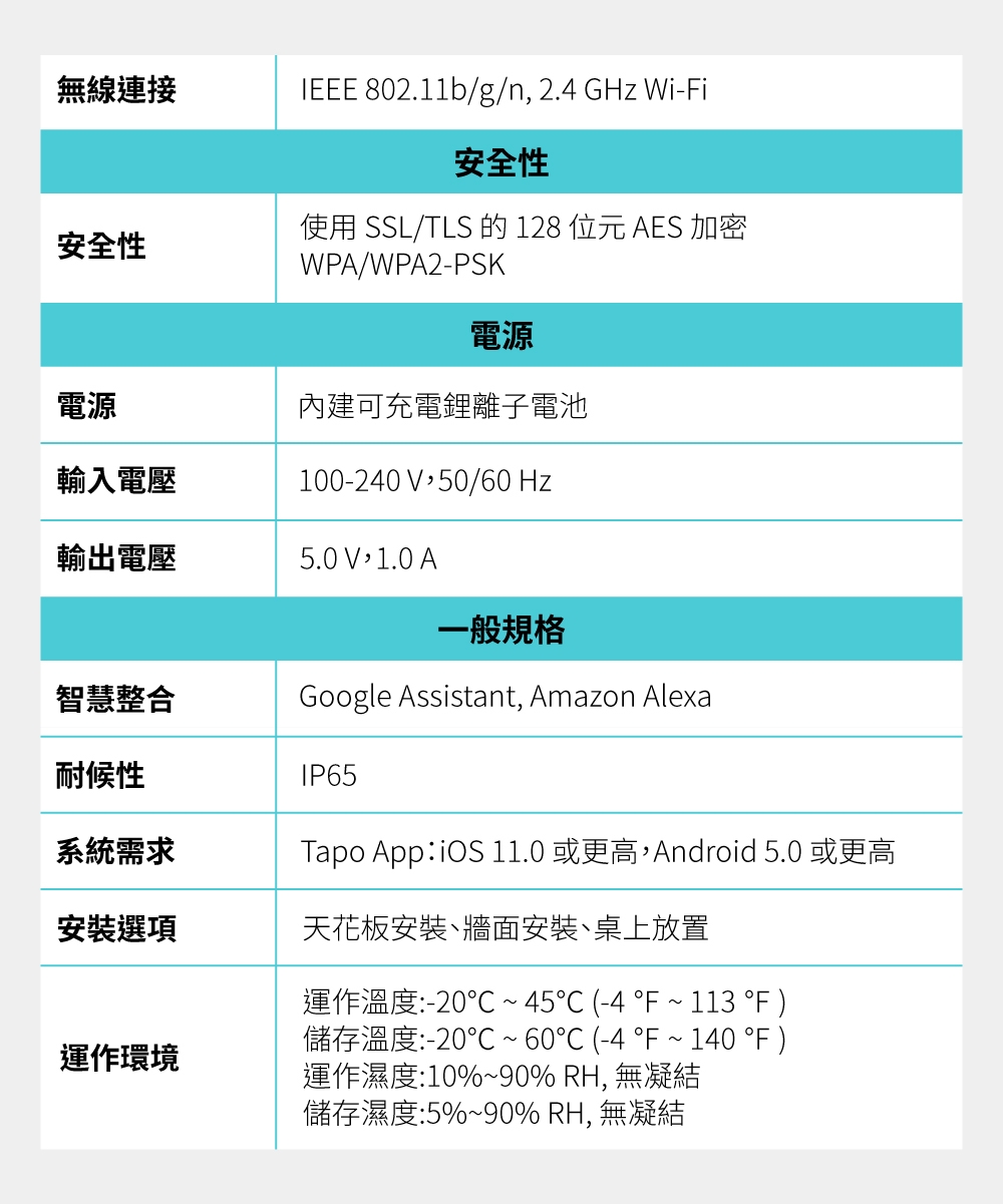 • 特色:透過 Tapo app 即可輕鬆管理、設定