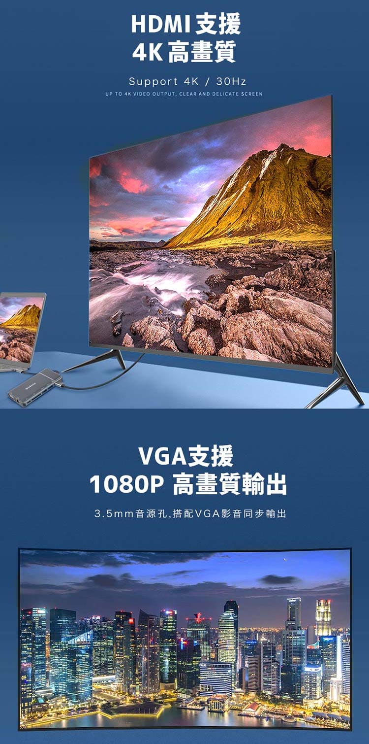 • HDMI支援4K高畫質,VGA支援1080P高畫質輸出