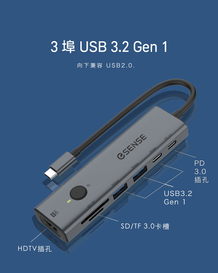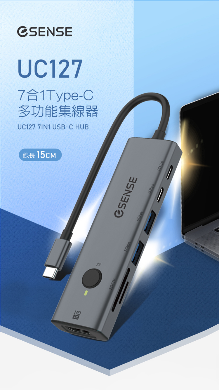 ESENSE 逸盛|UC127 7合1 Type-C 多功能集線器