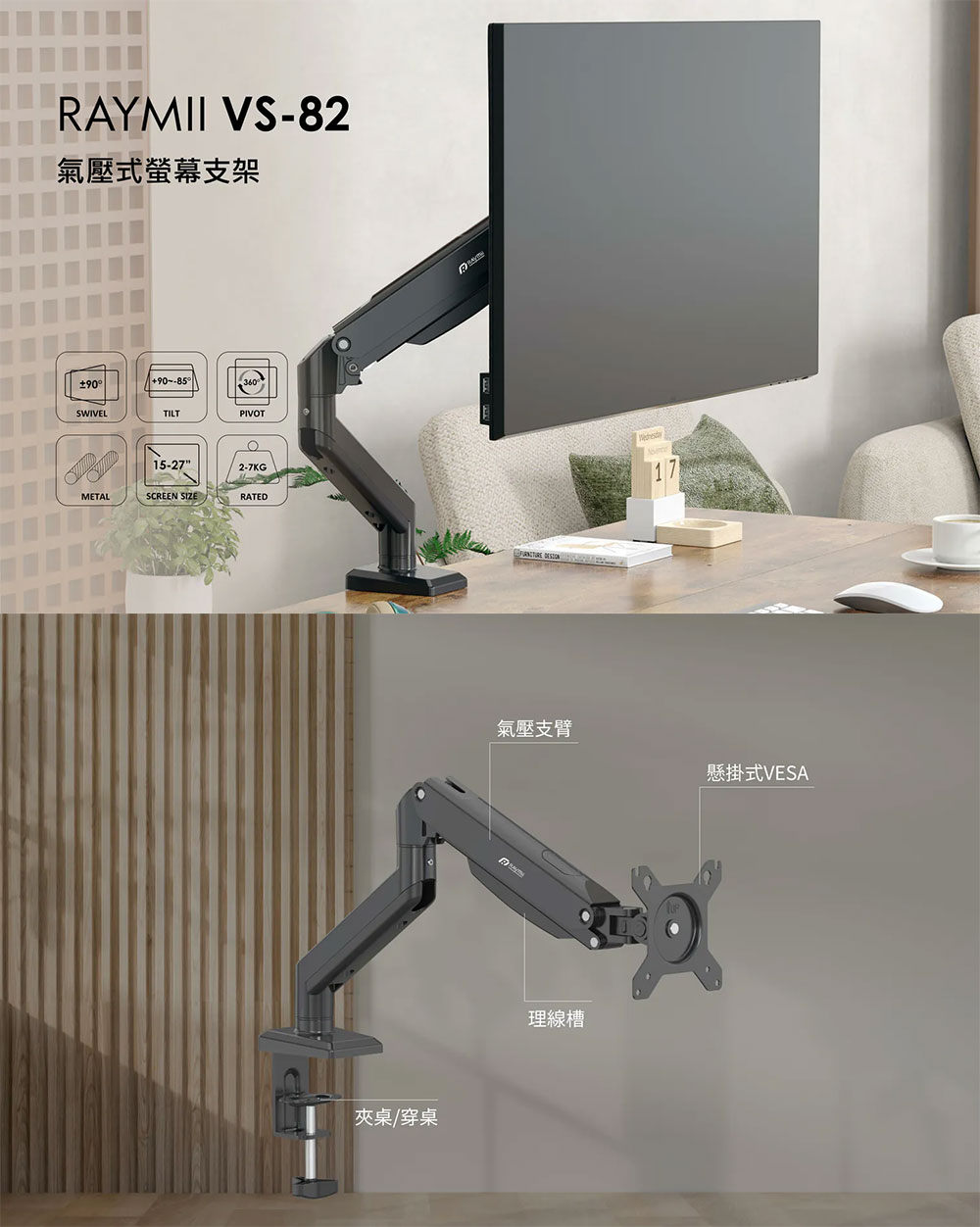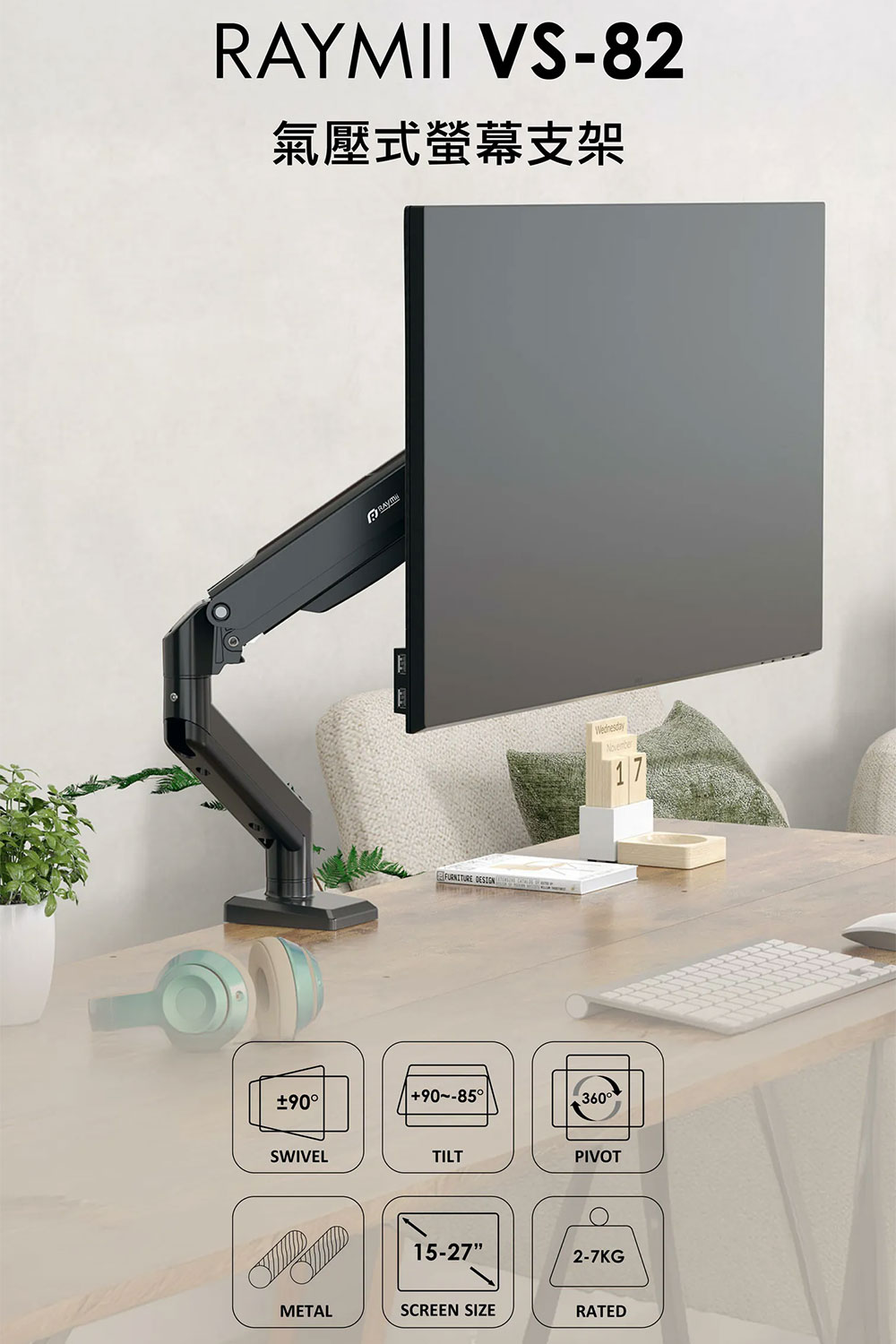 Raymii 瑞米|VS-82 氣壓式螢幕支架-黑