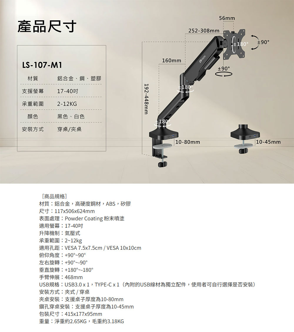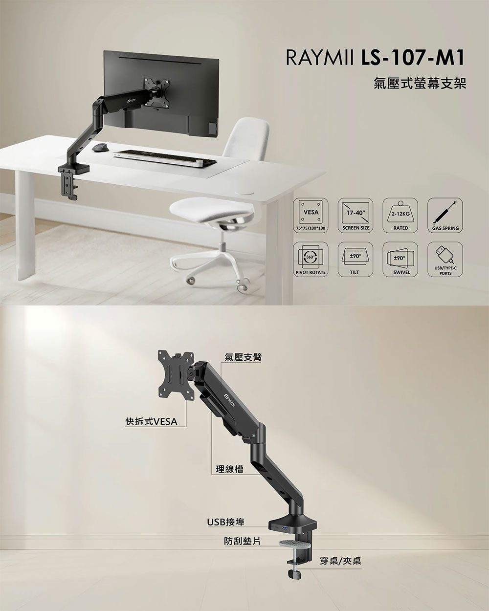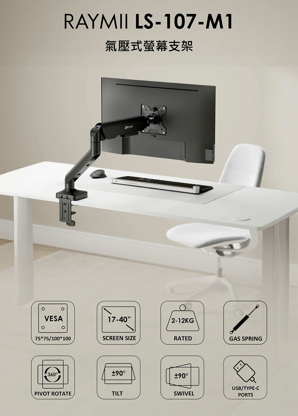 Raymii 瑞米|LS-107-M1 高承重螢幕架-黑