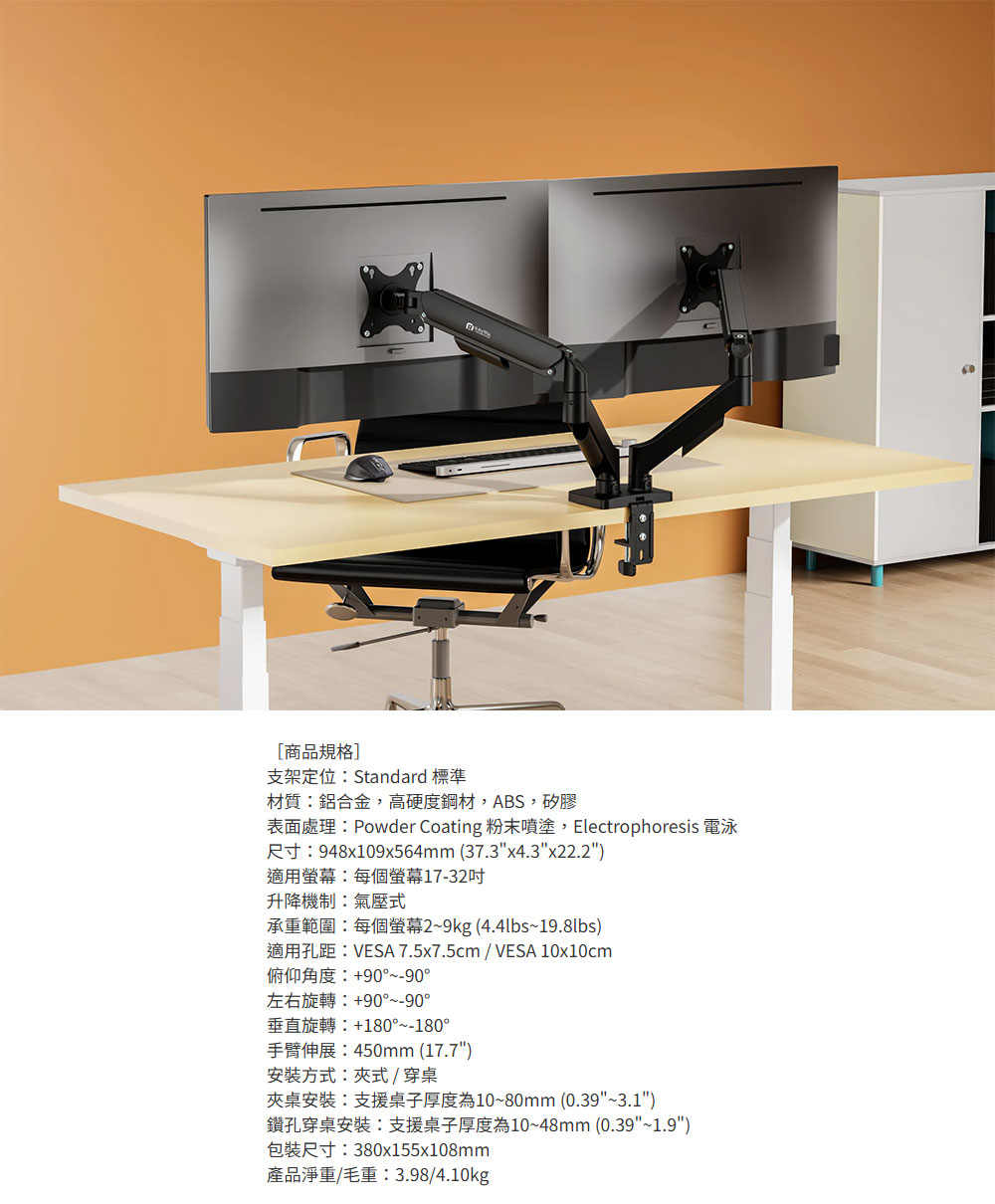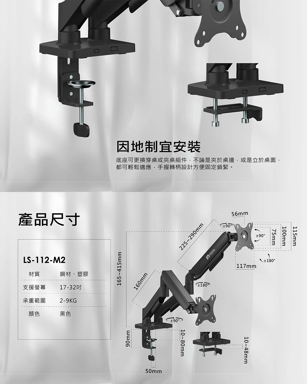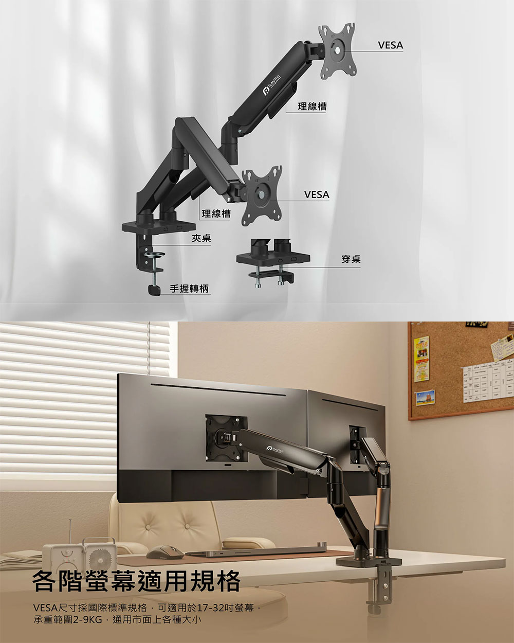 Raymii 瑞米|LS-112-M2 氣壓式雙螢幕支架