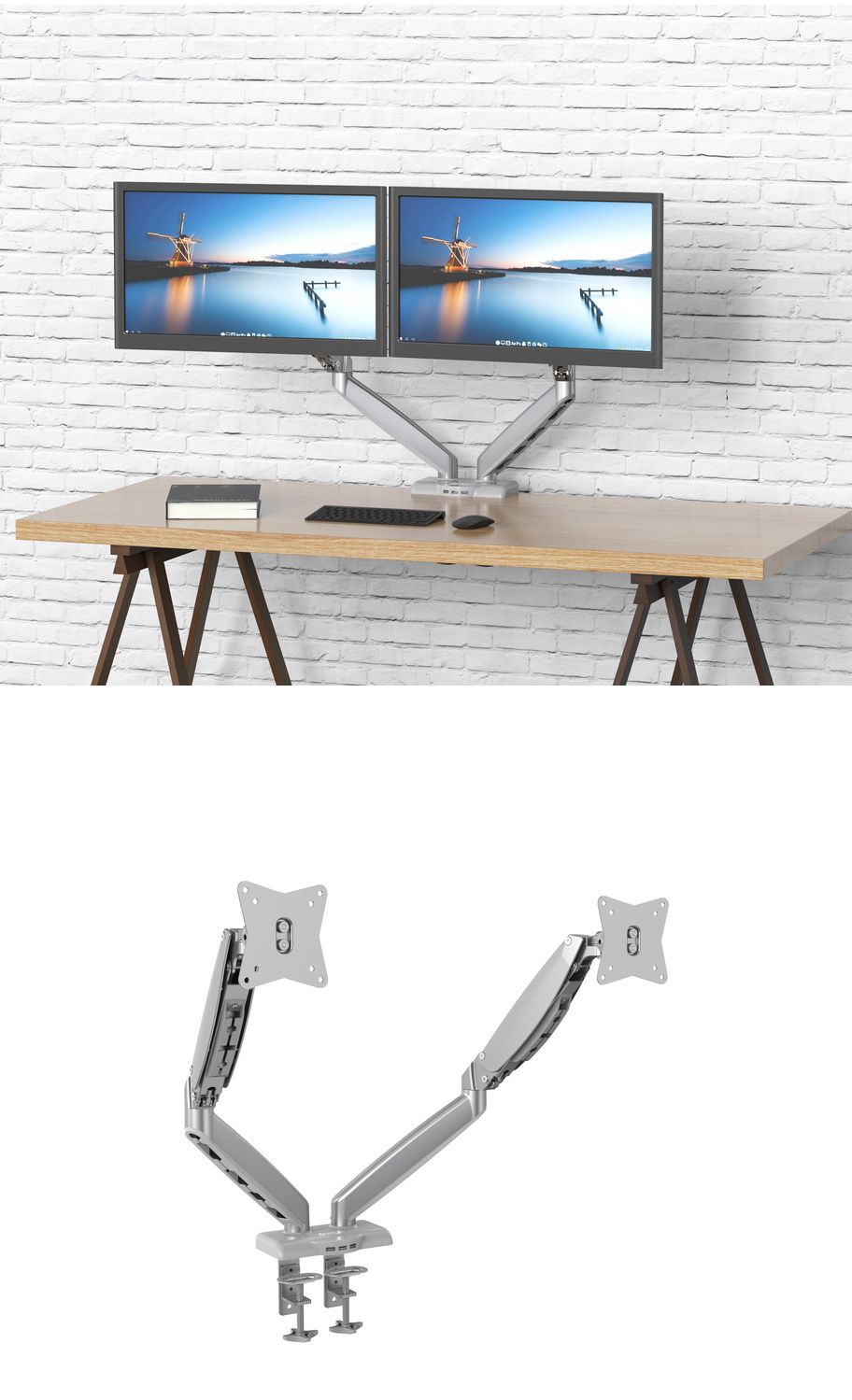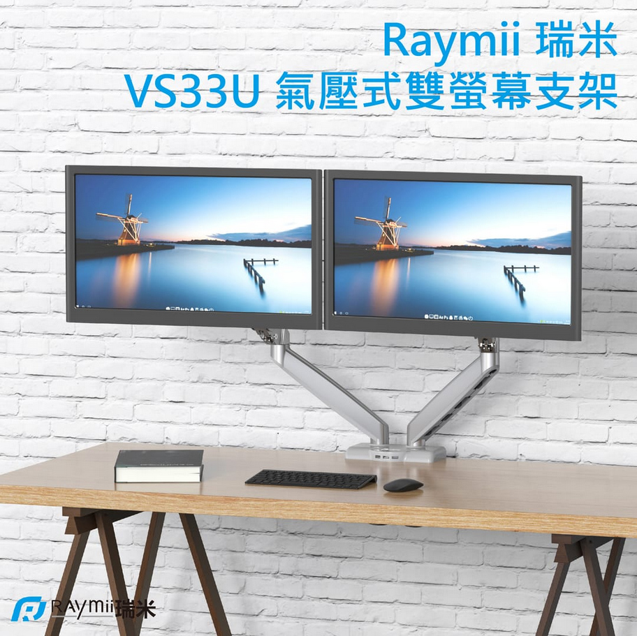【瑞米 Raymii VS33U 氣壓式鋁合金USB雙螢幕支架 螢幕架 螢幕增高支架】