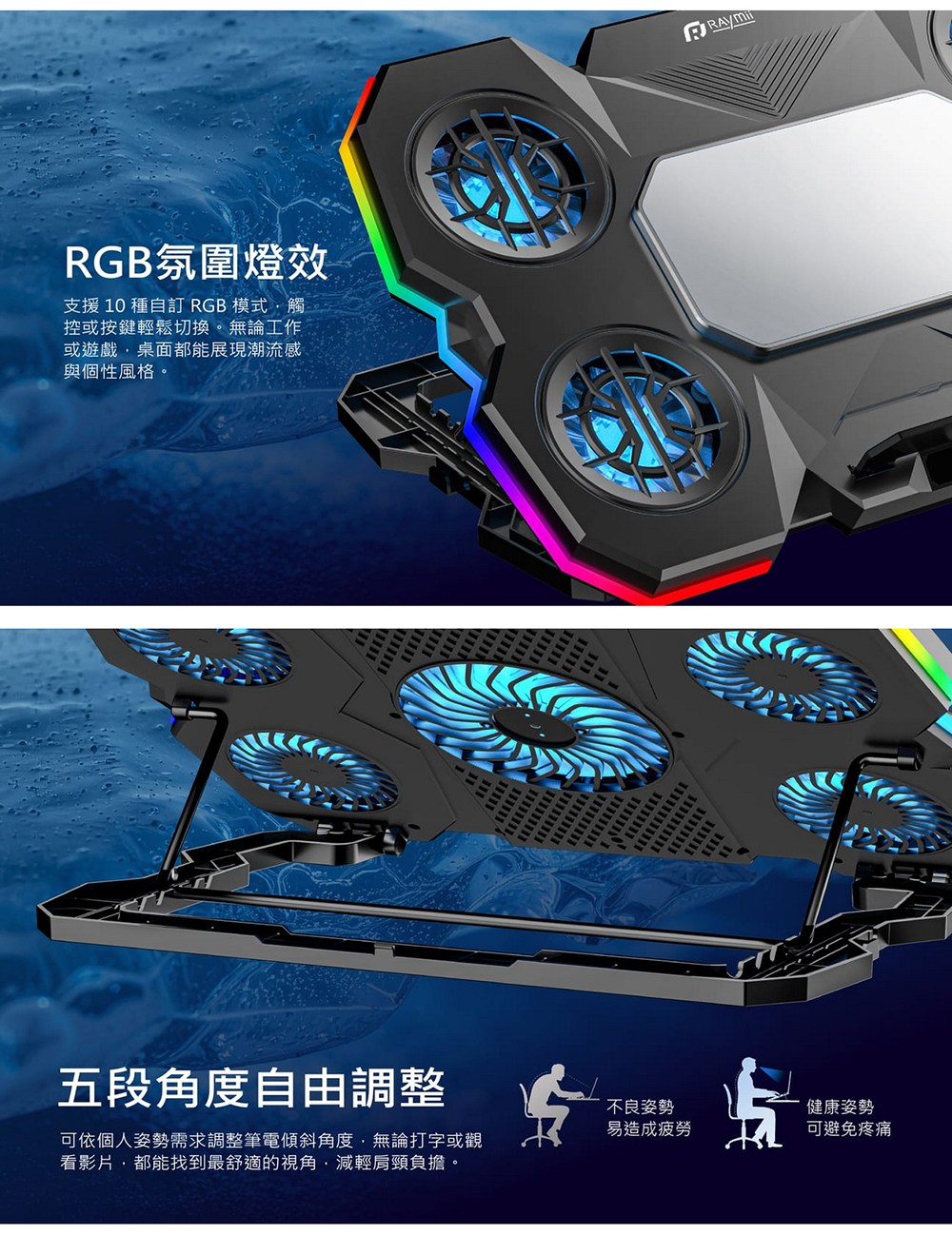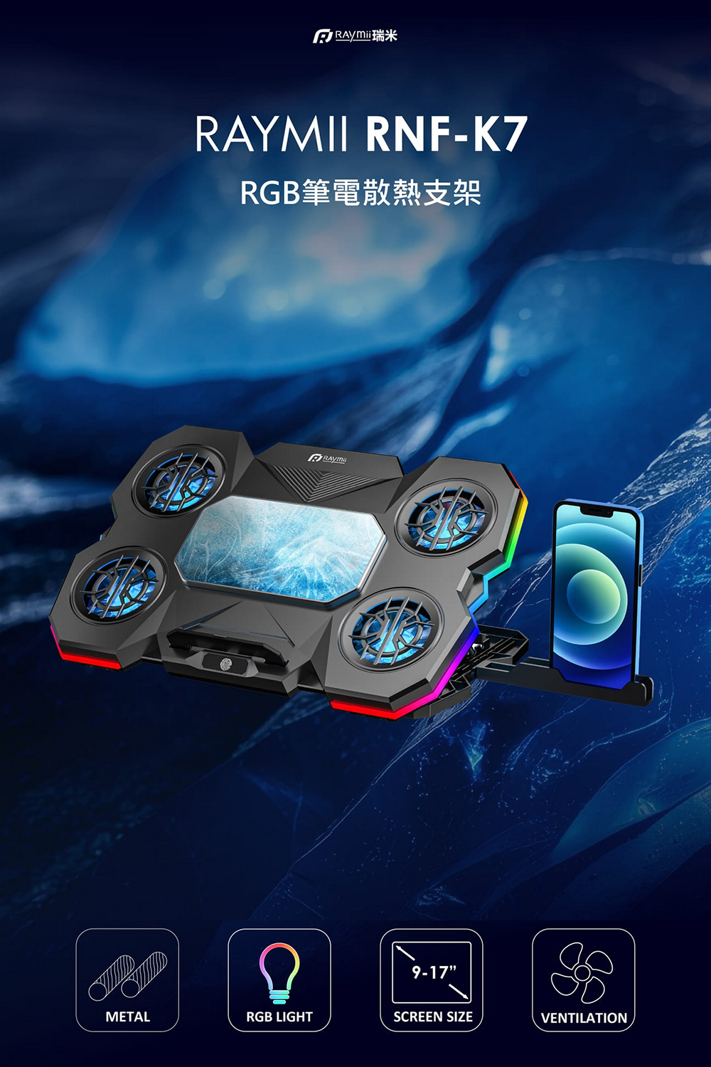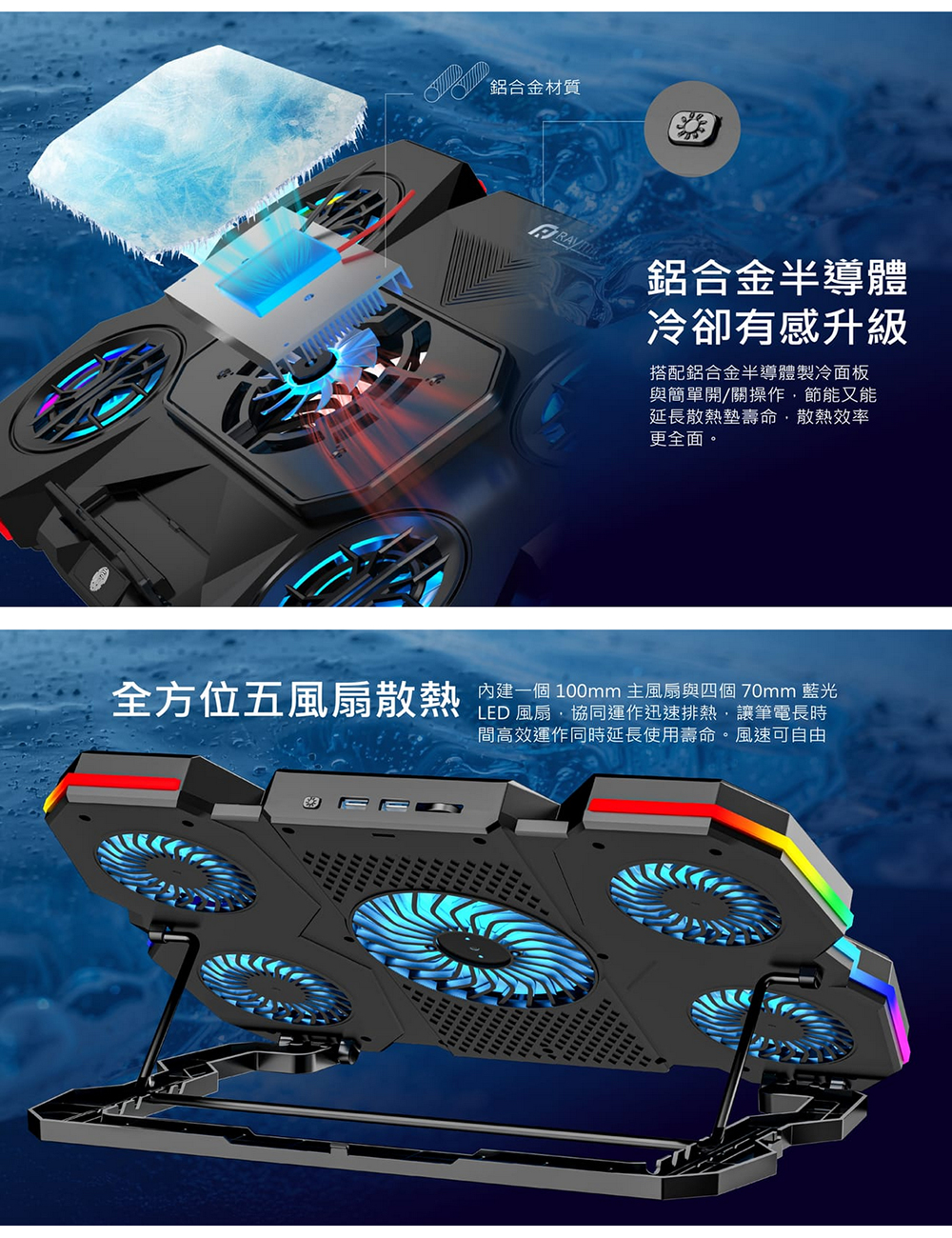 【瑞米 Raymii RNF-K7 半導體製冷5風扇RGB筆電散熱支架 筆電架】