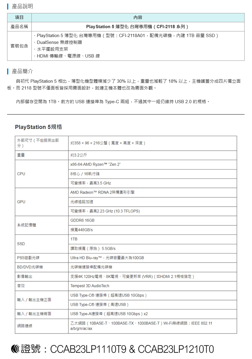★7天猶豫期非試用期,7天內尚未決定是否購買本商品,切勿拆封與破壞原廠外盒包裝。 ★商品一經拆封或使用,等同商品價值已受損,僅能以福利品出售,若非商品本身瑕疵而需退換貨,須收取價值損失之費用(回復原狀、整新費、安裝配送費等,約商品售價的10~30%不等之費用),請先確認訂購商品無誤,再行開機/使用,以免影響您的權利,祝您購物順心。(如原廠判定為人為損壞,本公司有權拒絕退換貨申請) ★若因產品故障要退換貨商品,必須為無髒汙、無損傷之狀態且包裝完整(含商品主機、包裝內外盒不得刮傷破損,配件/隨附文件與贈品不得缺件)。 ★若因新品故障要退換貨商品,新品瑕疵判斷將由原廠工程人員檢測。如對收到商品有疑慮,建議開箱過程全程錄影,以確保自身權益。 ★如需施工團隊特殊配送或安裝的大型家電(電視、冷氣、冰箱、洗衣機等)收到消費者付款之訂單需求後,將會派發給運送與施工團隊,當派單完成後,訂單狀態為出貨中,此狀態不一定是實際完成出貨,僅代表發單至施工團隊,實際以施工團隊與訂購者電話約裝的內容為主。 在3-5天工作天內,施工廠商將進行聯絡之約裝動作。 ★遊戲片(含軟體)商品一經拆封視同購買,無法退換貨。 ※ 賣場商品與形象情境圖僅供參考,以實際出貨商品為主 ※ 出貨提醒:如遇不可抗外力,例如颱風、豪雨、工廠或海運空運罷工等天災與其他難以抗拒的人為事件,致使貨運公司未上班營運,網購商品將會延後出貨。 NCC編號:CCAB23LP1110T9 & CCAB23LP1210T0 國際條碼:4948872416979