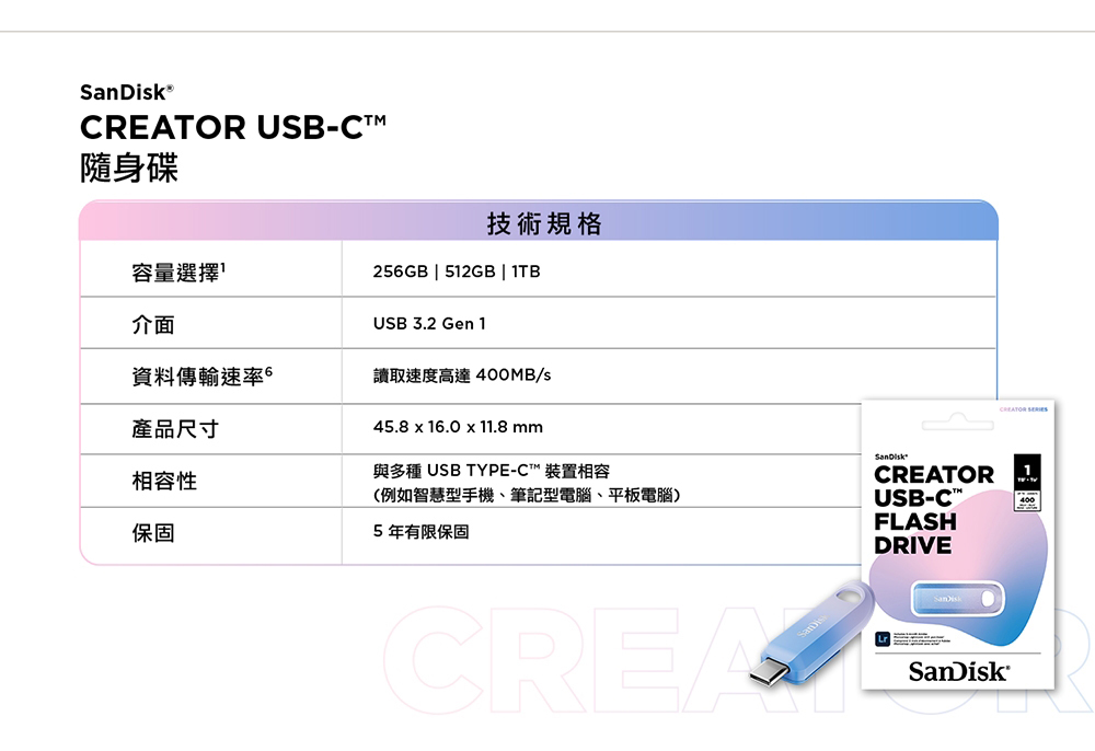 SanDisk|Creator Type-C USB 隨身碟 256GB