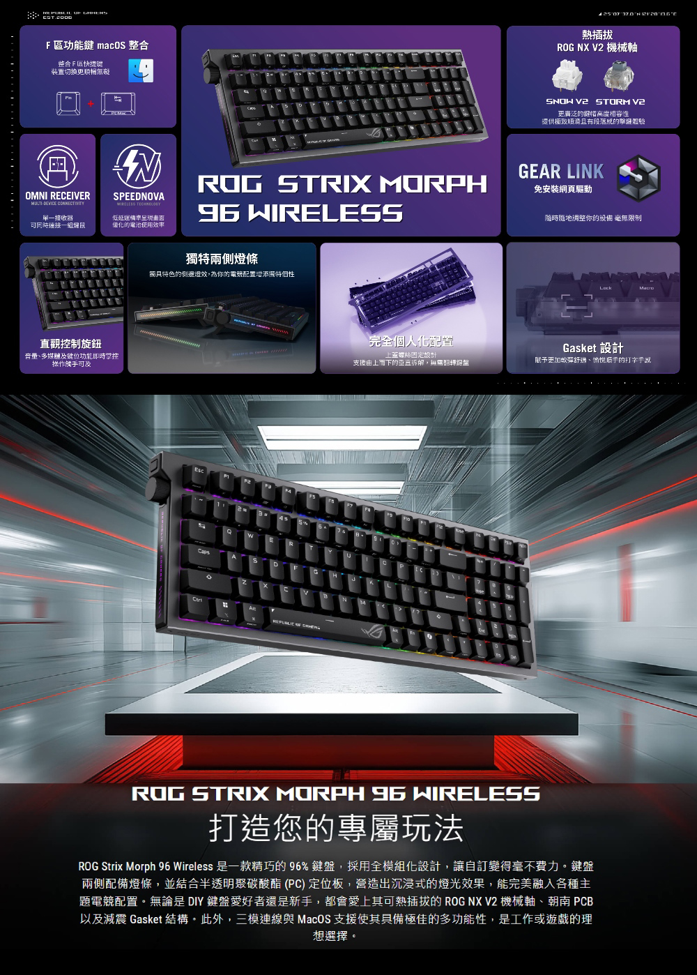 ASUS 華碩|ROG Strix Morph 96 無線電競鍵盤|NX-V2 雪軸