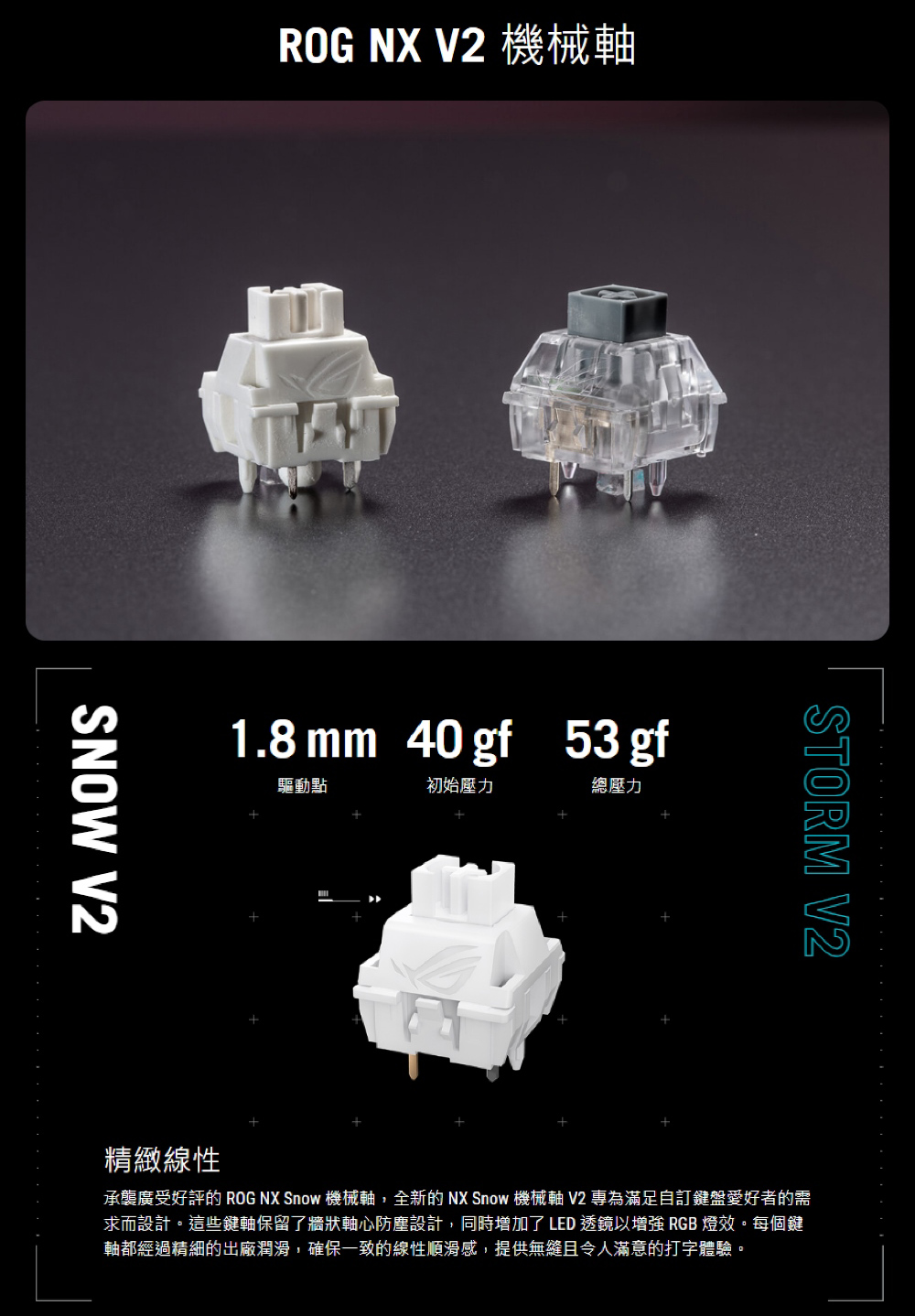 • 軸體:ROG NX Snow 機械軸 V2