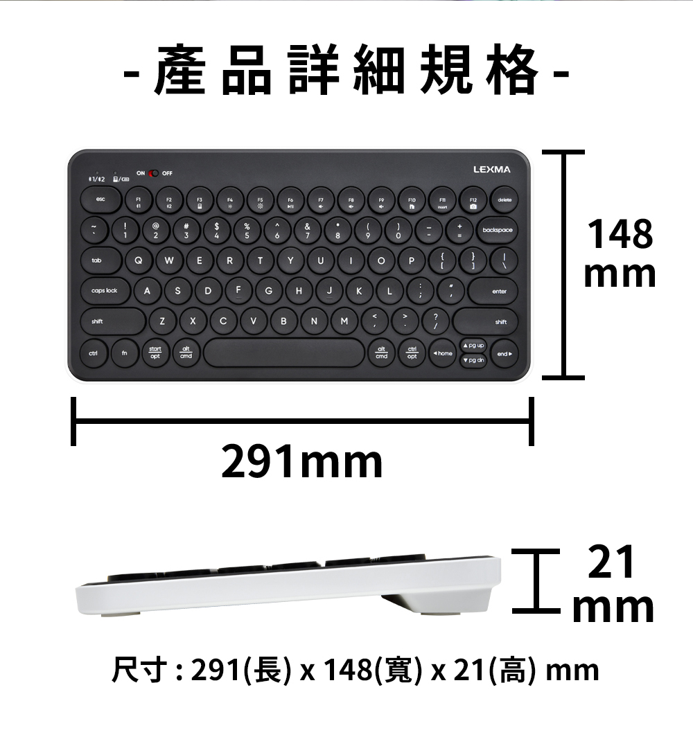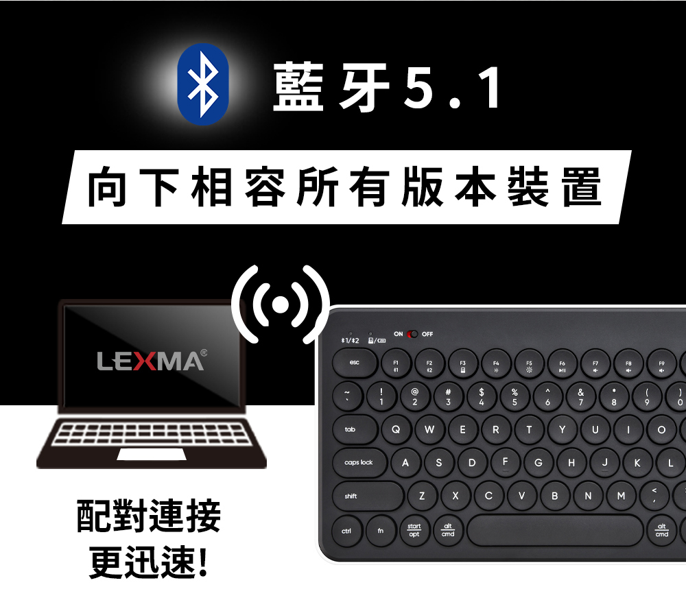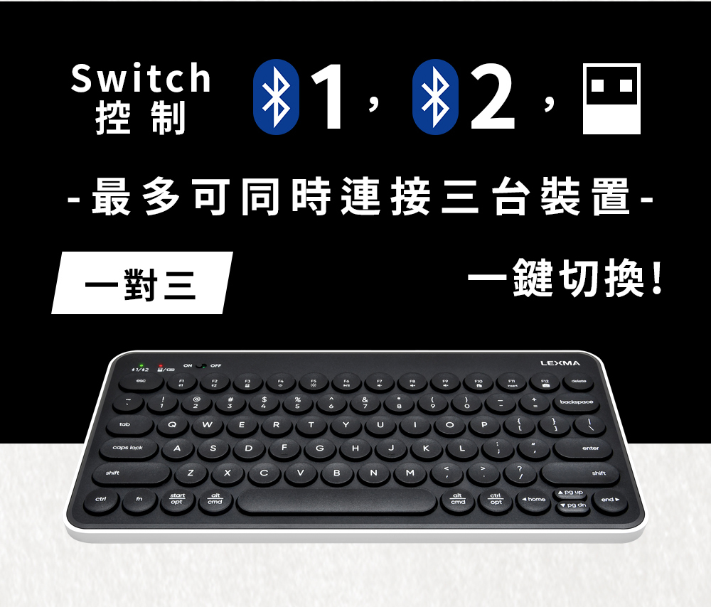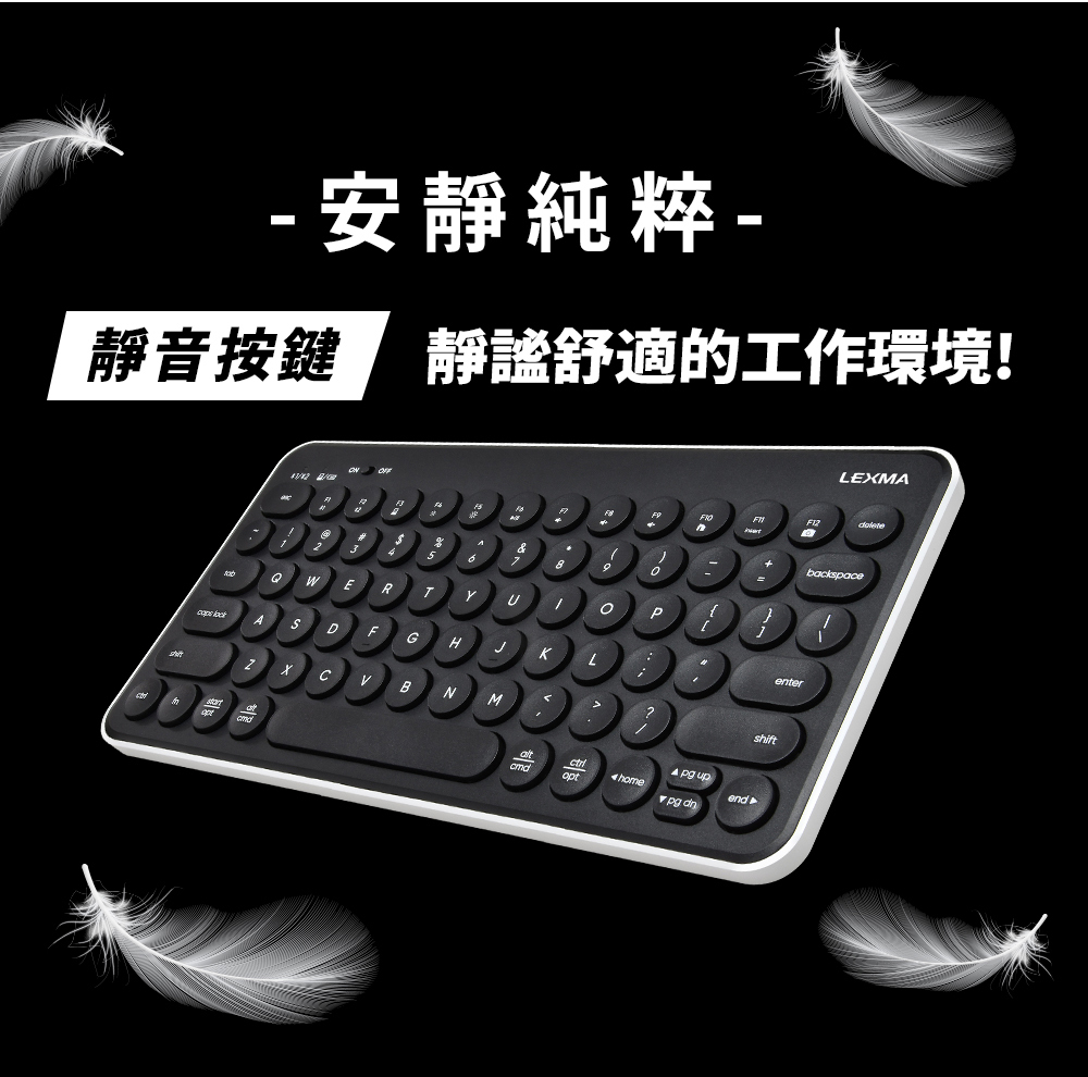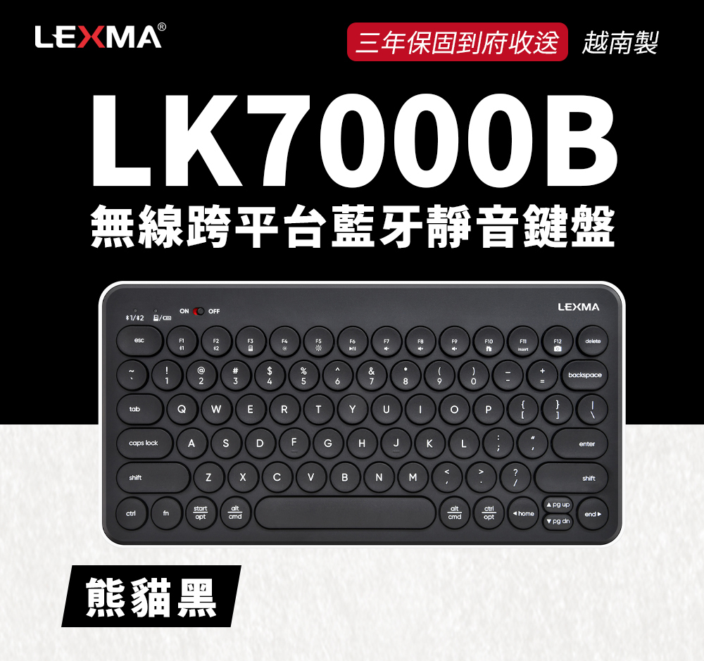 LEXMA 雷馬|LK7000B 無線跨平台藍牙靜音鍵盤 熊貓黑