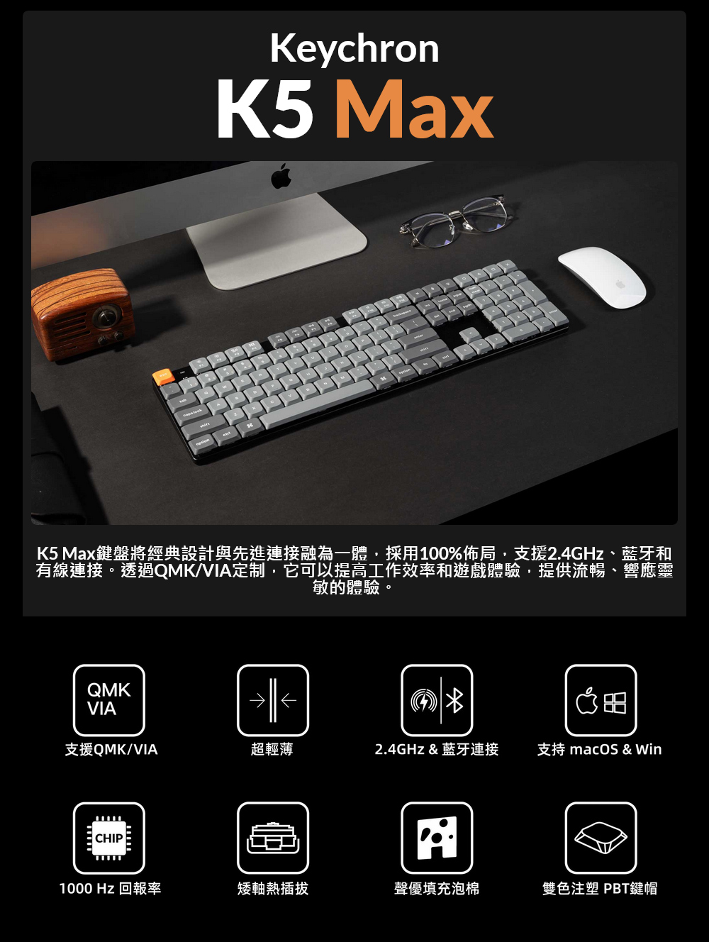 KEYCHRON|K5 Max QMK 無線機械鍵盤 矮茶軸/黑色