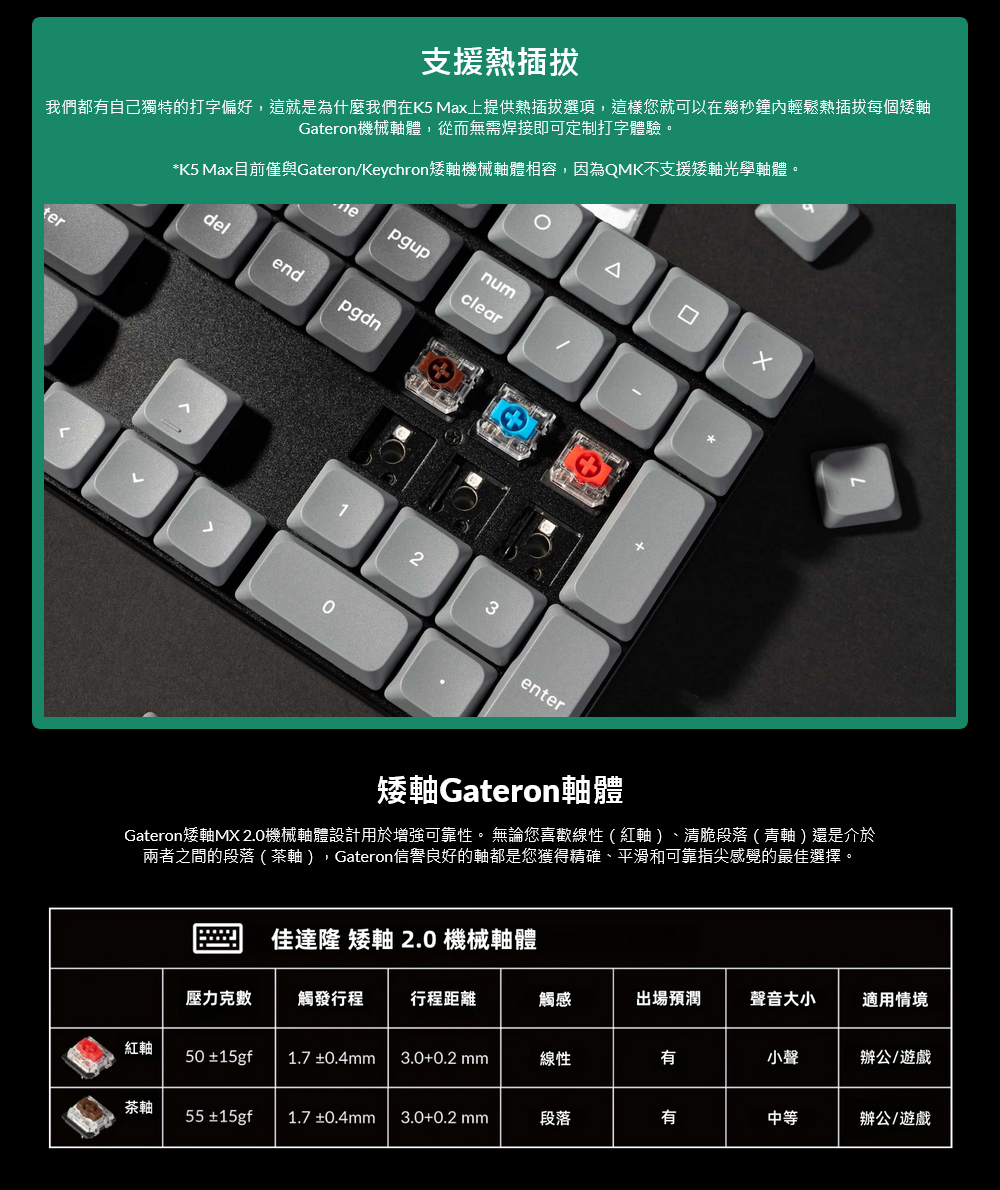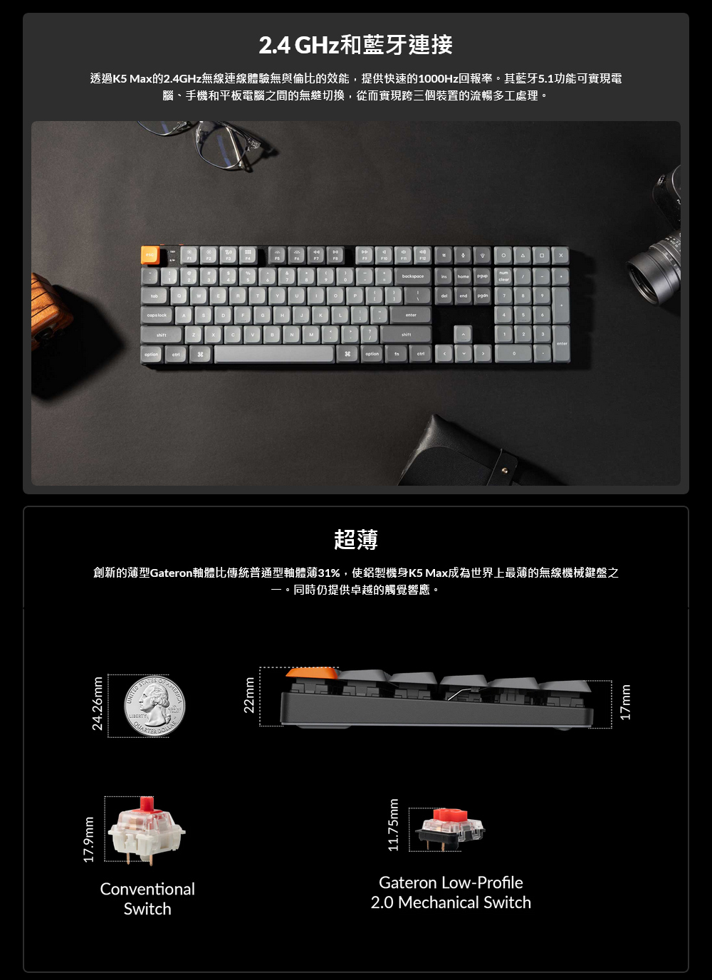 【KEYCHRON】K5 Max QMK 無線機械鍵盤 矮茶軸/黑色