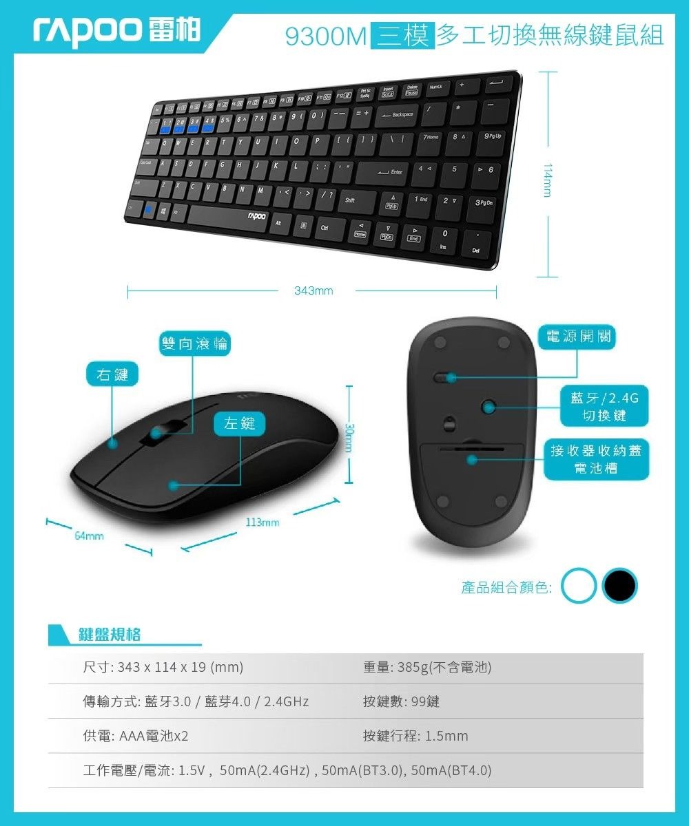 重量鍵盤385g(不含電池) 滑鼠59g(不含電池)