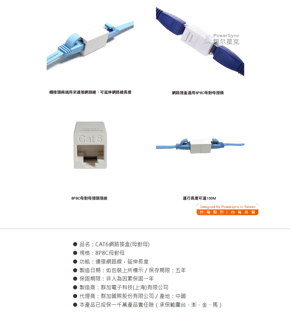 PowerSync 群加|PE316WH CAT6網路接盒 [母對母]