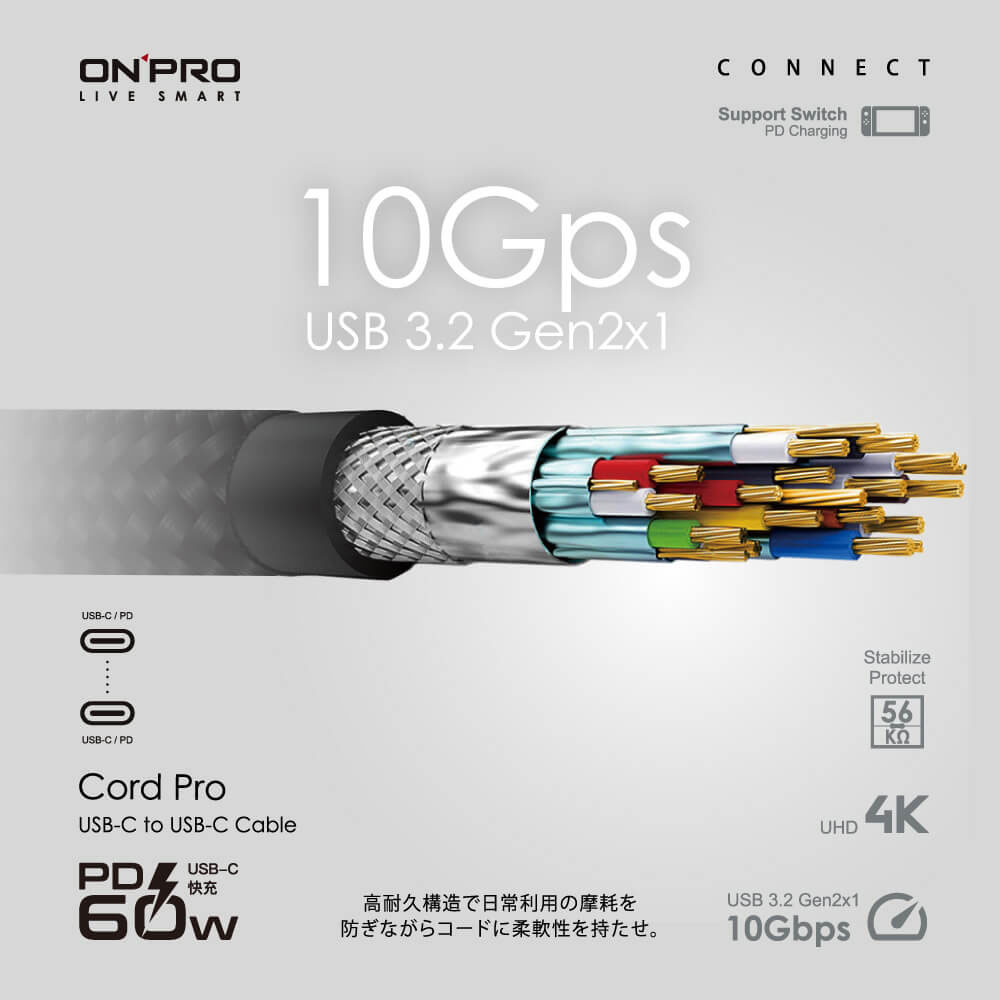 ONPRO|Cord Pro USB-C to C PD60W 充電線-1.2M/黑