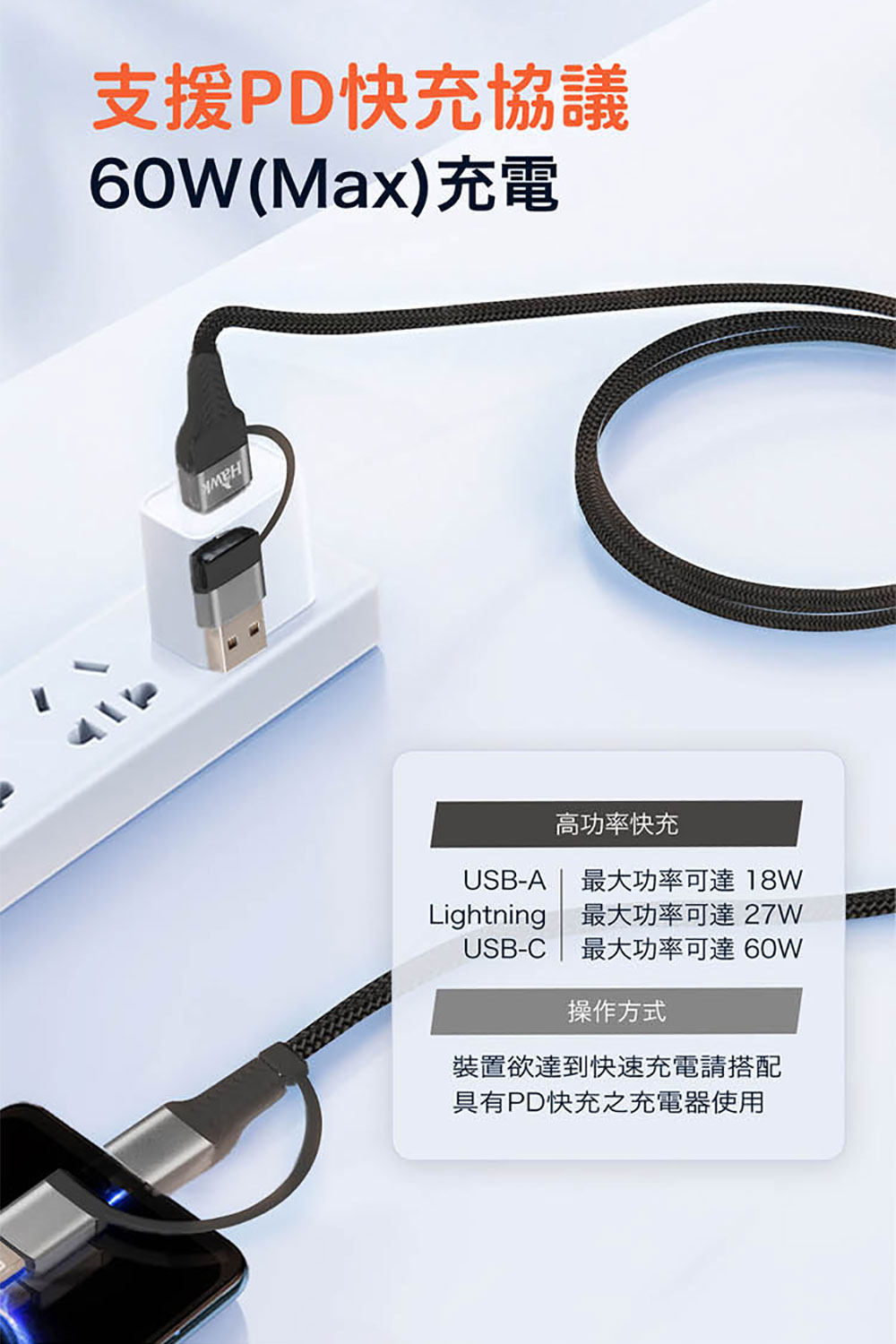 ESENSE 逸盛|TYPE-C 四合一充電傳輸線-1M/黑