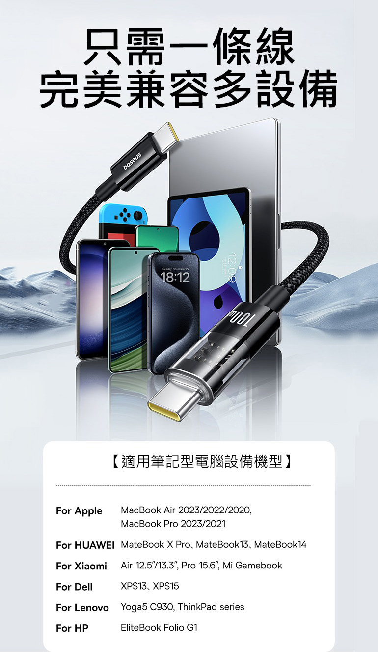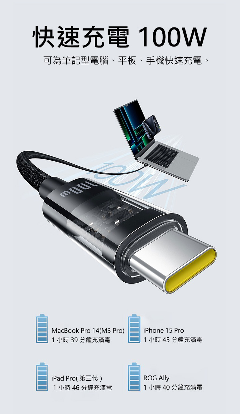 • PD 100W快速充電支援多種設備