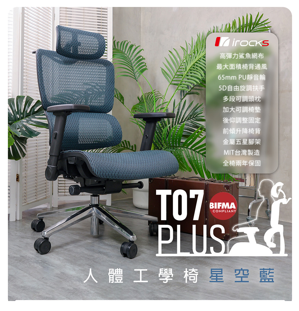 iRocks|T07 Plus 人體工學 電腦椅 星空藍