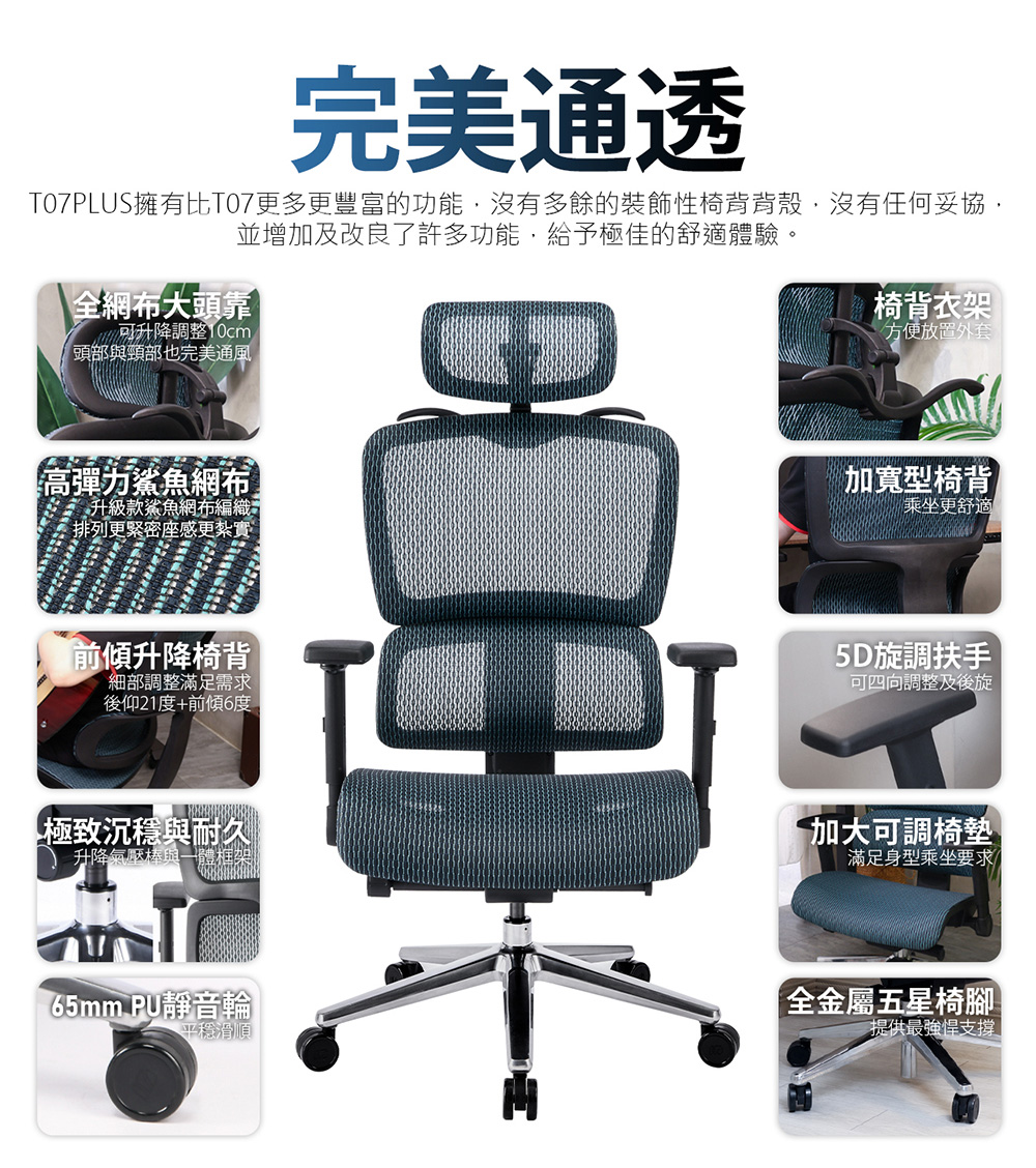 【iRocks】T07 Plus 人體工學 電腦椅 星空藍