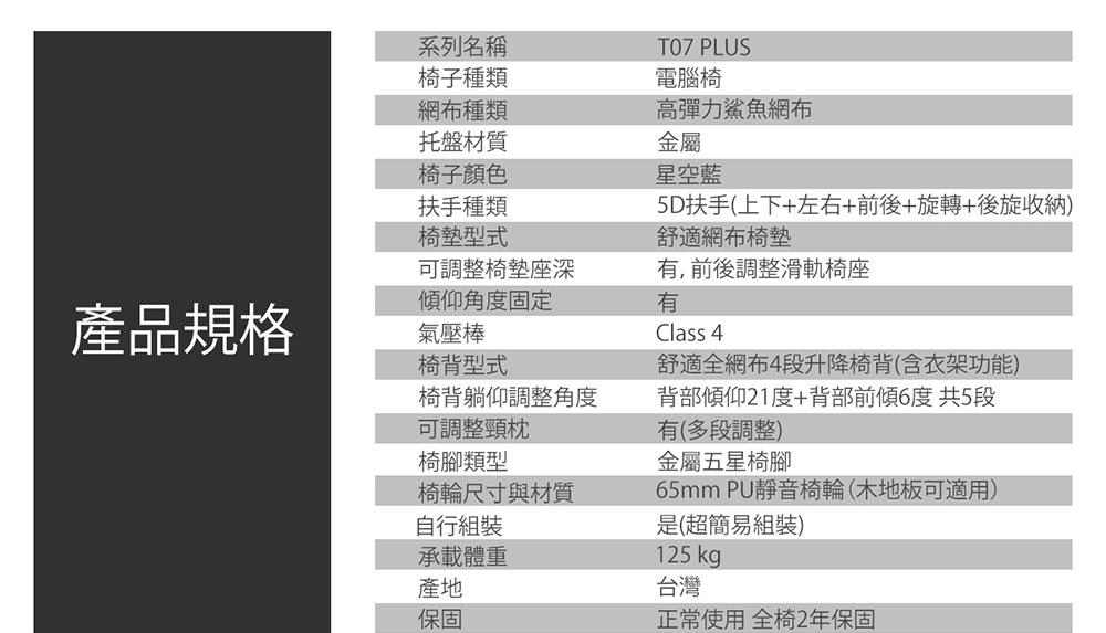 • 台灣生產製造,正常使用下全椅2年保固服務