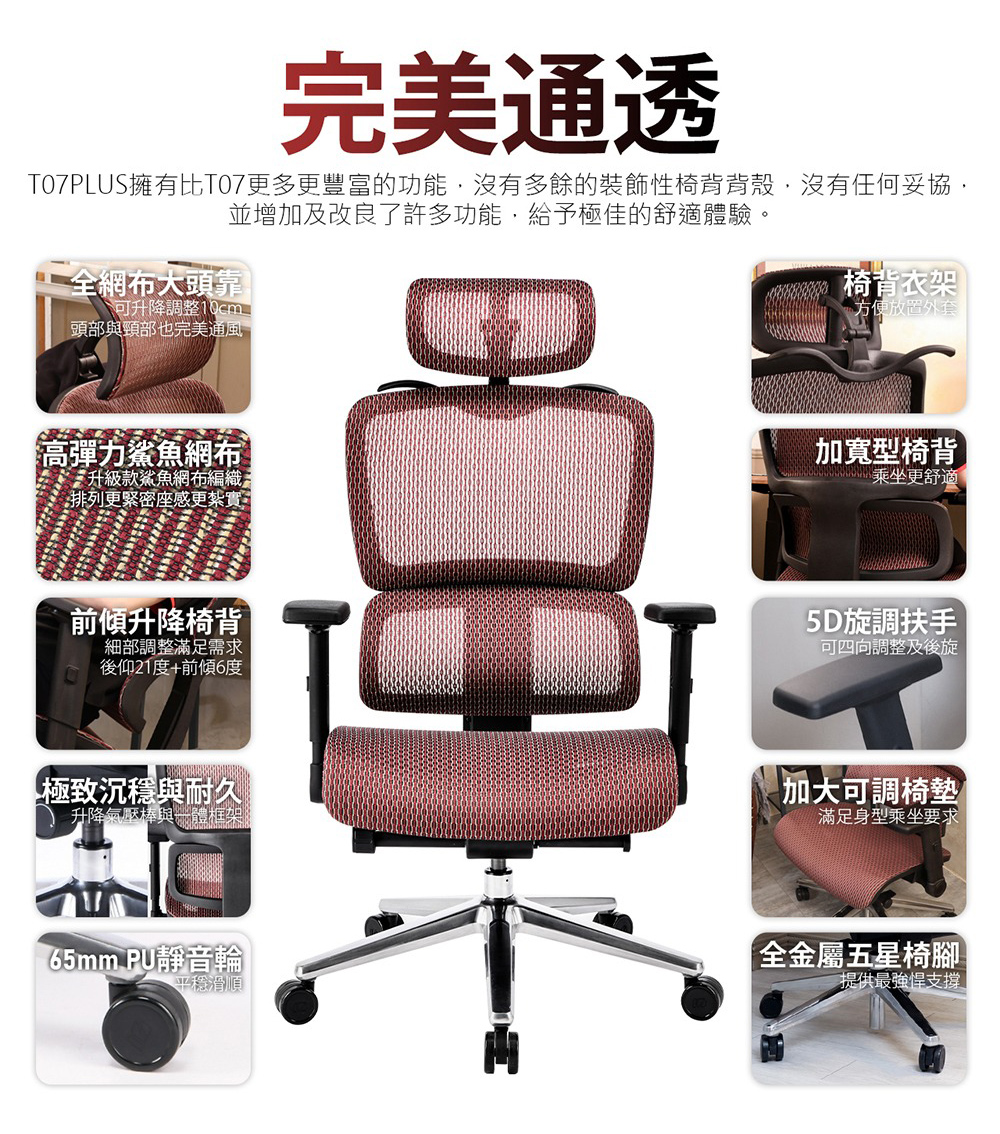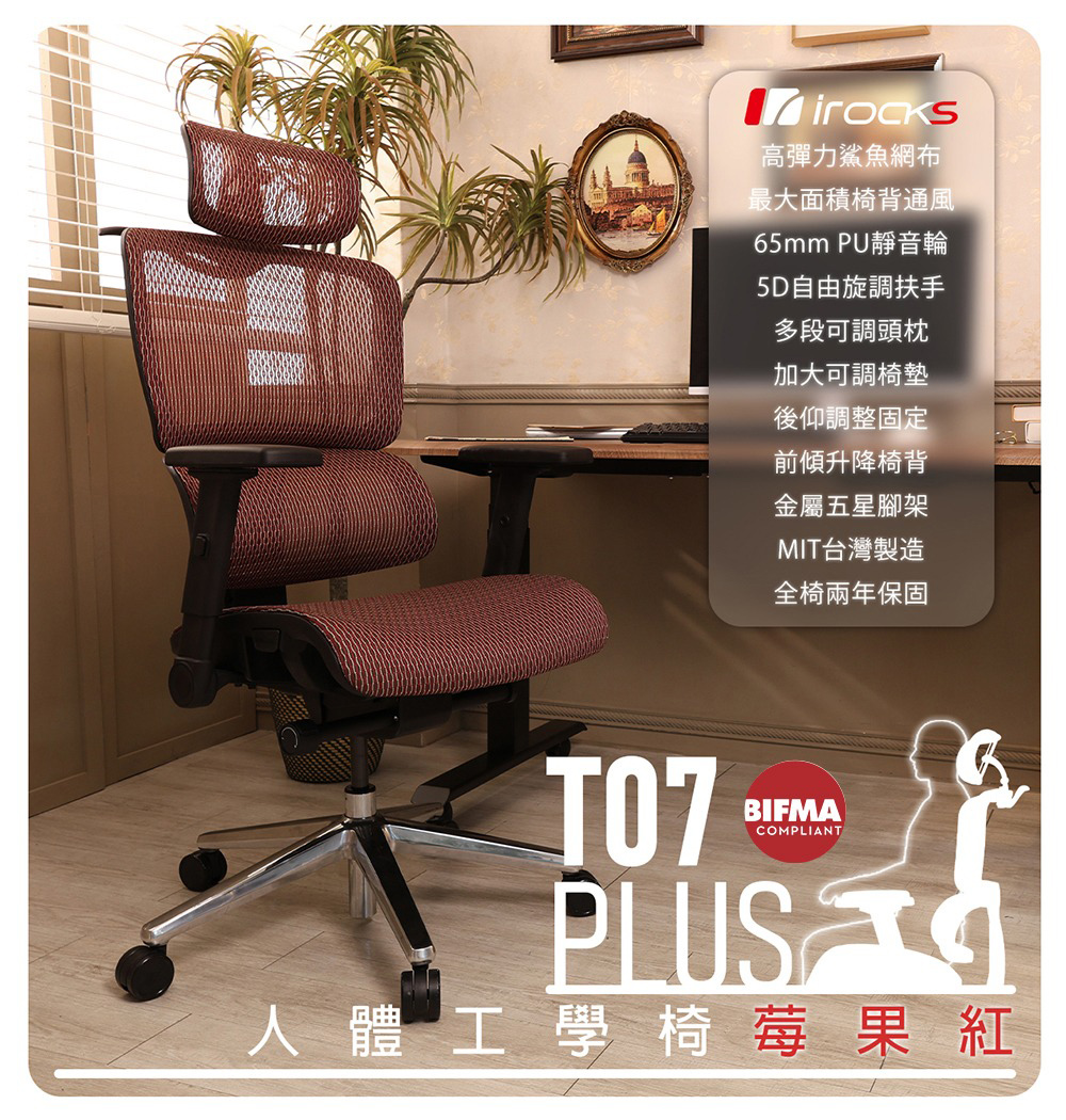 【iRocks】T07 Plus 人體工學 電腦椅 莓果紅