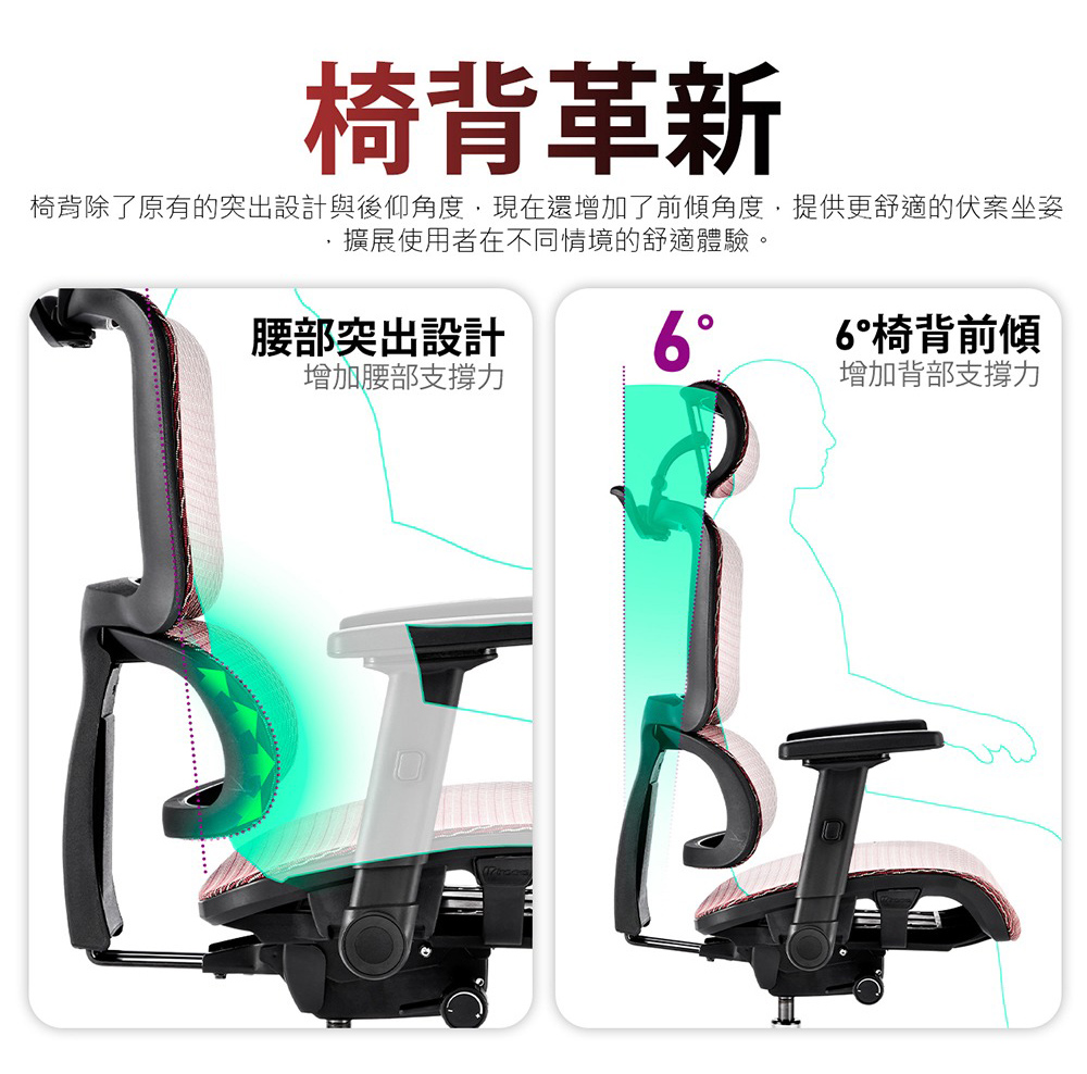 • 椅背前傾式角度設計,提供舒適的伏案辦公坐姿支撐