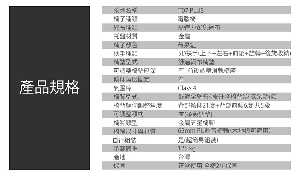 • 台灣生產製造,正常使用下全椅2年保固服務