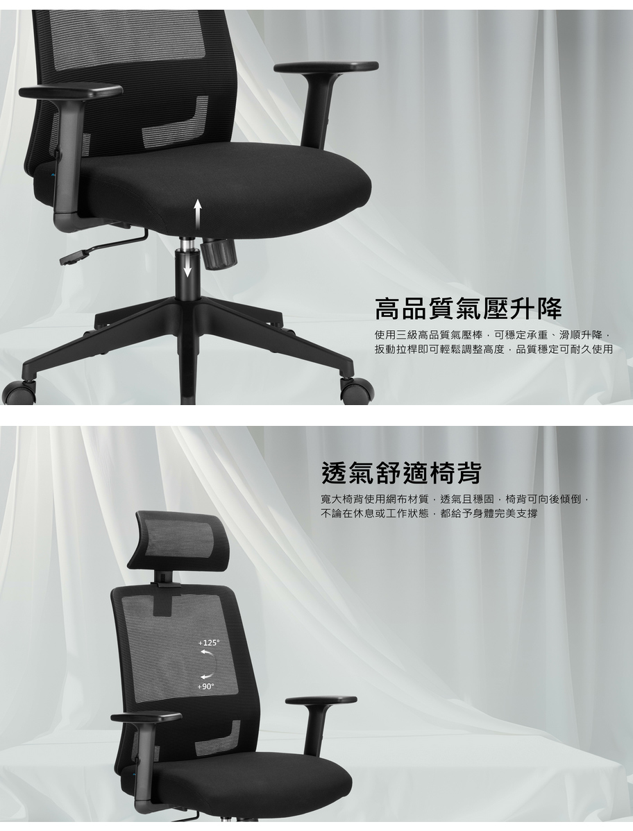 [商品特色] 1.瑞米RAYLIFT®系列辦公座椅是符合人體工學的辦公電腦椅,專為專業人士、遠距工作者以及長時間坐在辦公桌前的人設計,為那些患有下背部疼痛、頸部勞損或整體不適的人提供必要的支撐 2. 相對於長時間坐著不應該是一件難事,座墊提供持久的支撐,減輕臀部和大腿的壓力,同時長時間保持其形狀,適合全天使用的椅子可讓您保持高效率和舒適 3. 這款符合人體工學的辦公椅將功能性與時尚的現代設計相結合,為任何專業工作空間提供風格、舒適性和支撐性的完美平衡 4. 採用高強度玻璃纖維和尼龍框架設計,其網眼織物表面確保透氣性。最大承重為120公斤,提供穩定舒適的座椅體驗。可客製化的頭枕高度以獲得最佳舒適度和支撐 5. 可調節的腰部支撐與您的脊椎的自然曲線一致,確保完美貼合您的身體,以減輕下背部疼痛,可調節高度的頭枕可確保最佳的頸部支撐,最大限度地減少壓力並改善姿勢 6. 125°傾斜可增強放鬆度並提供靈活的座位角度,搖擺功能可讓您在需要休息時向後靠並放鬆,為您整個工作日增添額外的舒適感;可調節的腰部支撐提供個人化的下背部舒適度並促進最佳的脊椎對齊 ● 透氣網狀設計:增加空氣循環和冷卻(特別是在夏季) ● 可調式傾斜度:靠背、坐直 ● 高度可調式扶手:更好地貼合和支撐手臂 ● 重型底座和腳輪:確保耐用性和移動方便 ● 可調式頭枕:提供優異的支撐,確保頭部舒適 ● 可調式腰部支撐:提供個人化的下背部舒適度並促進最佳脊椎對齊 ● 氣動座椅高度調整:快速輕鬆地調整椅子