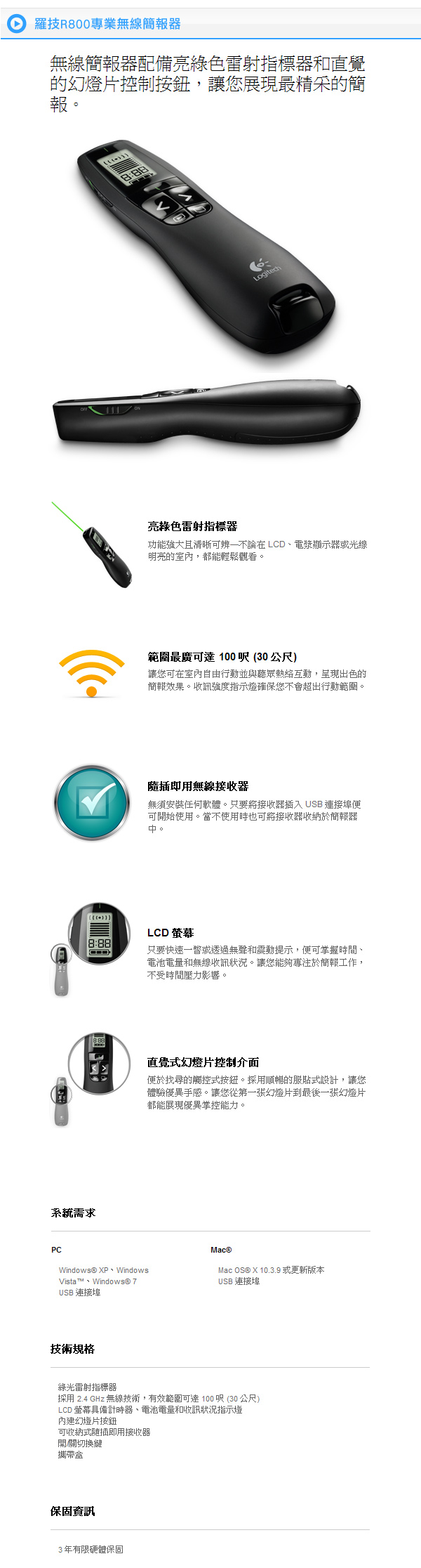 Logitech 羅技|R800 專業雷射簡報器 黑色