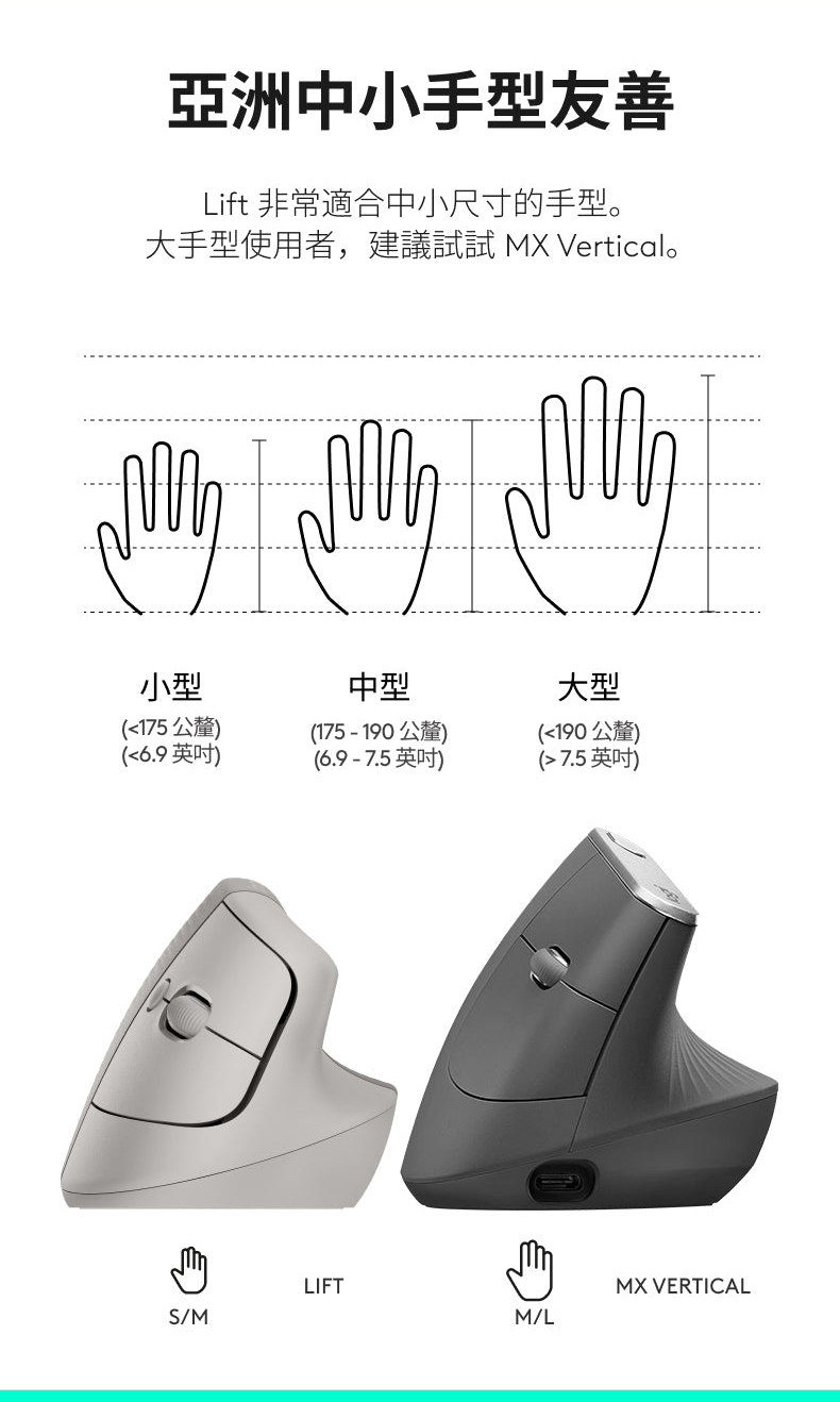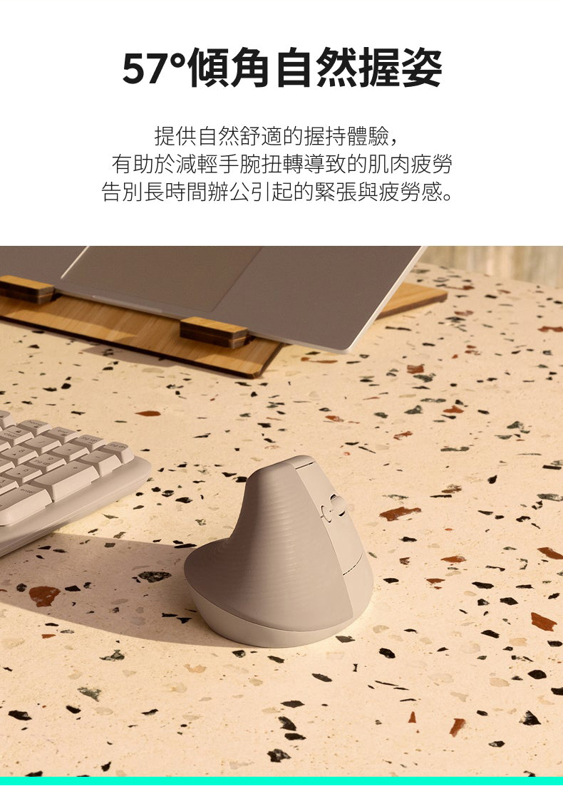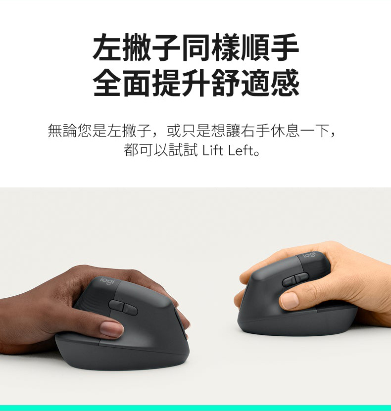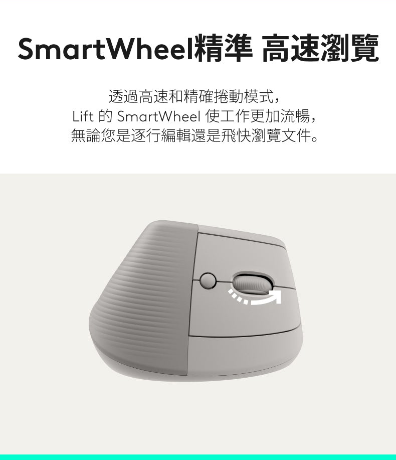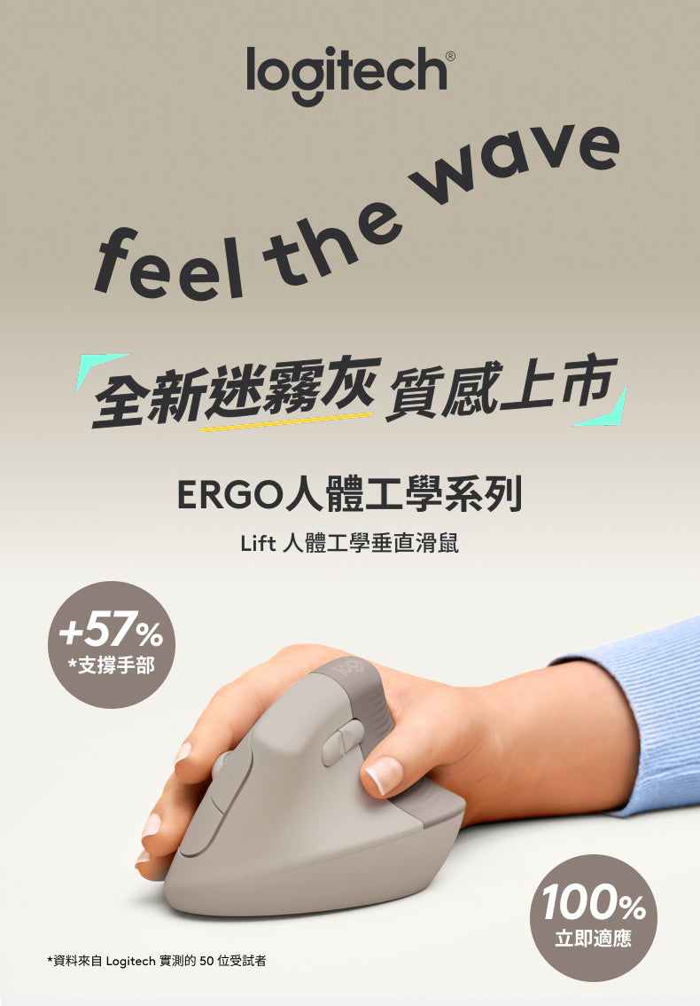 Logitech 羅技|LIFT 人體工學垂直滑鼠 迷霧灰《右手版》