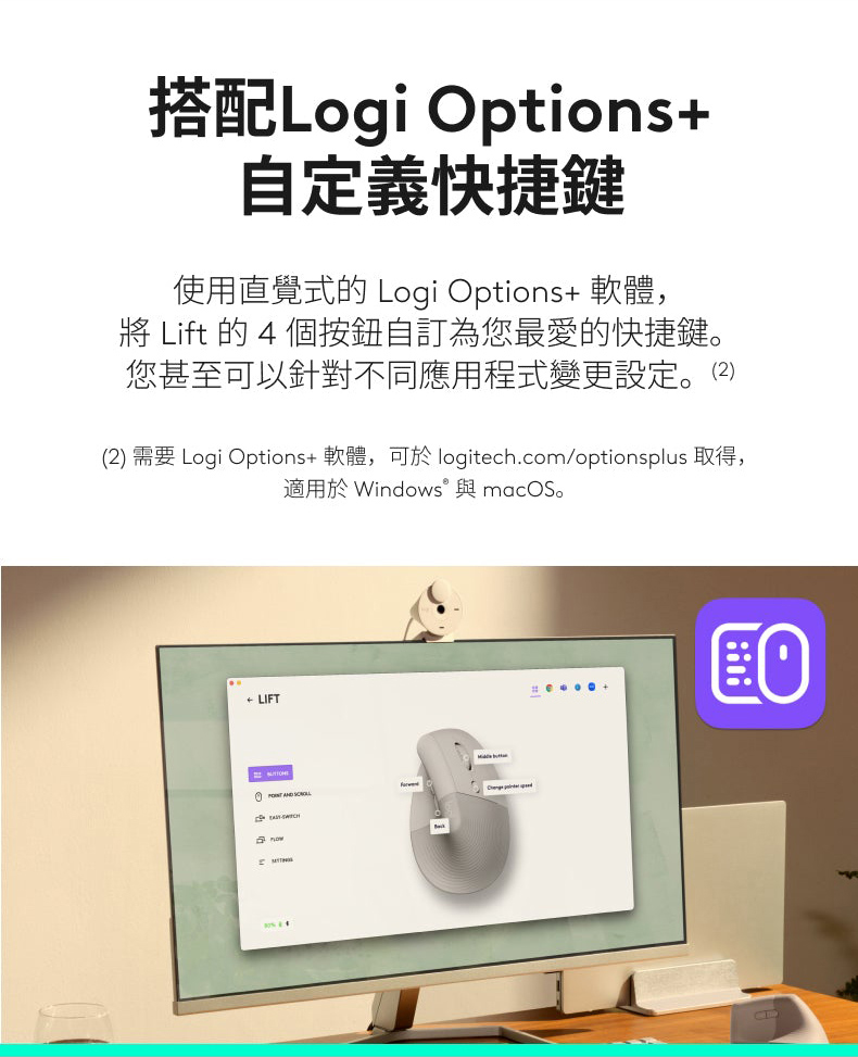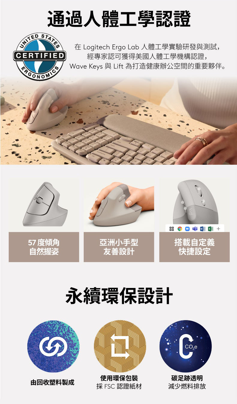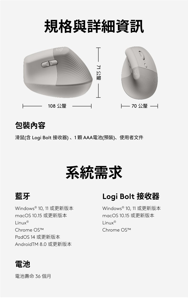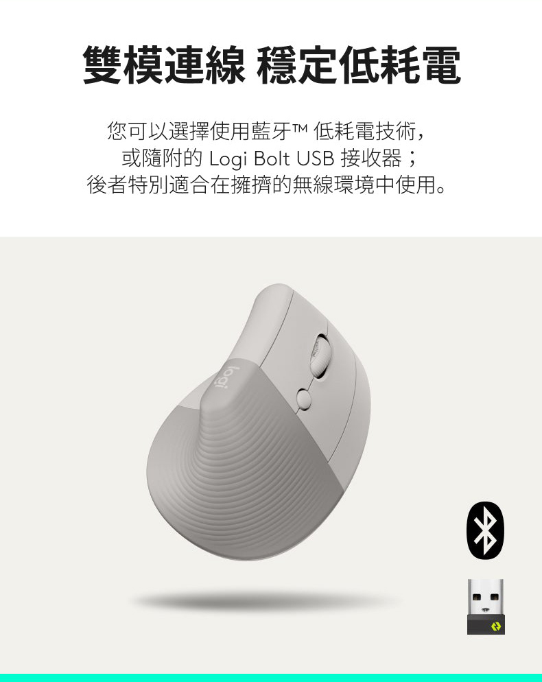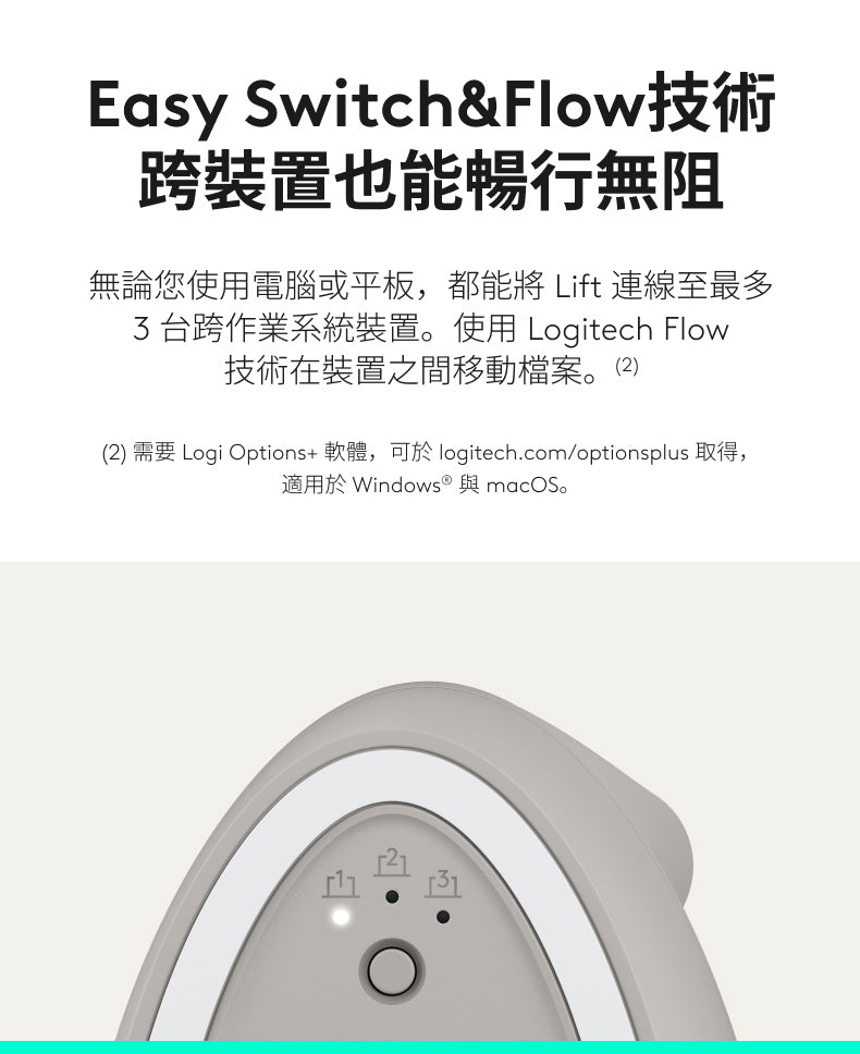 Logitech 羅技|LIFT 人體工學垂直滑鼠 迷霧灰《右手版》