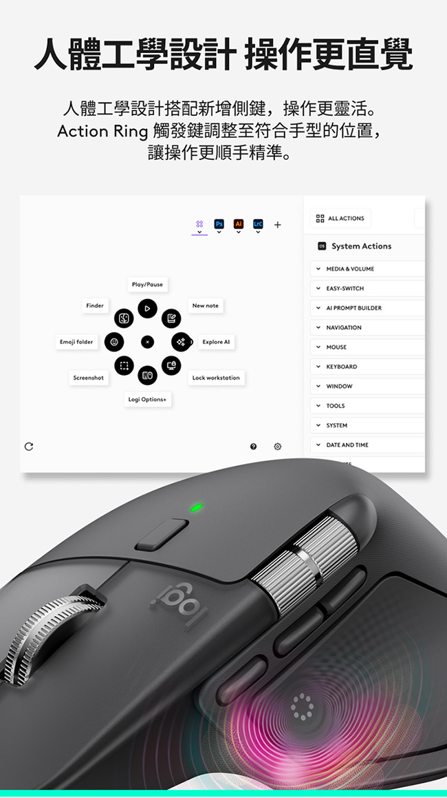 • 全新Actions Ring:觸發鍵調至符合手型的位置,可自定義8個按鍵,效率工作