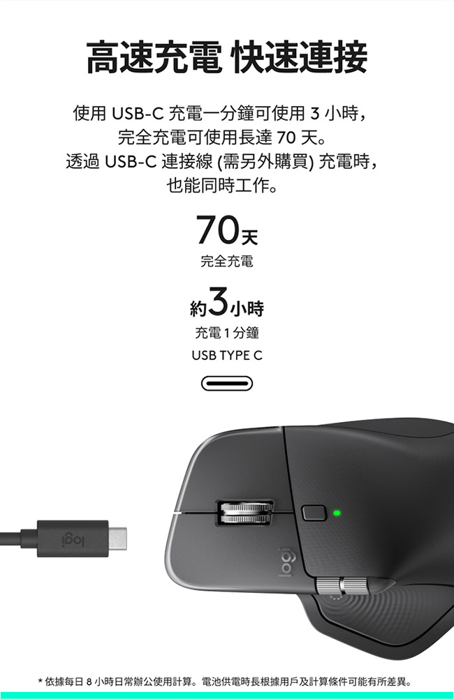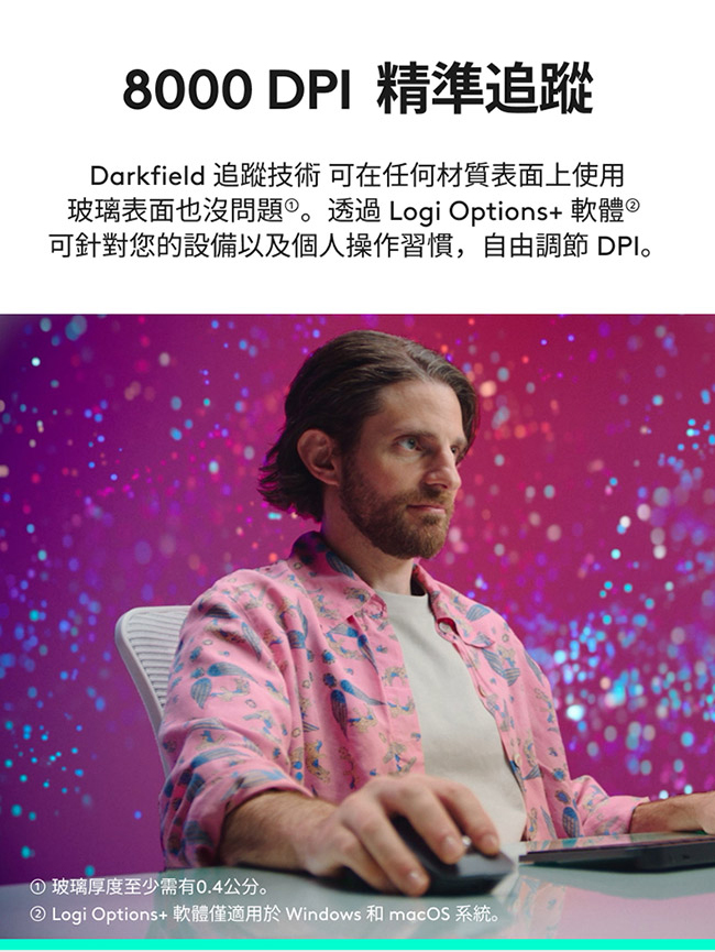 • 高精度感應器:最高8,000 DPI,精確追蹤
