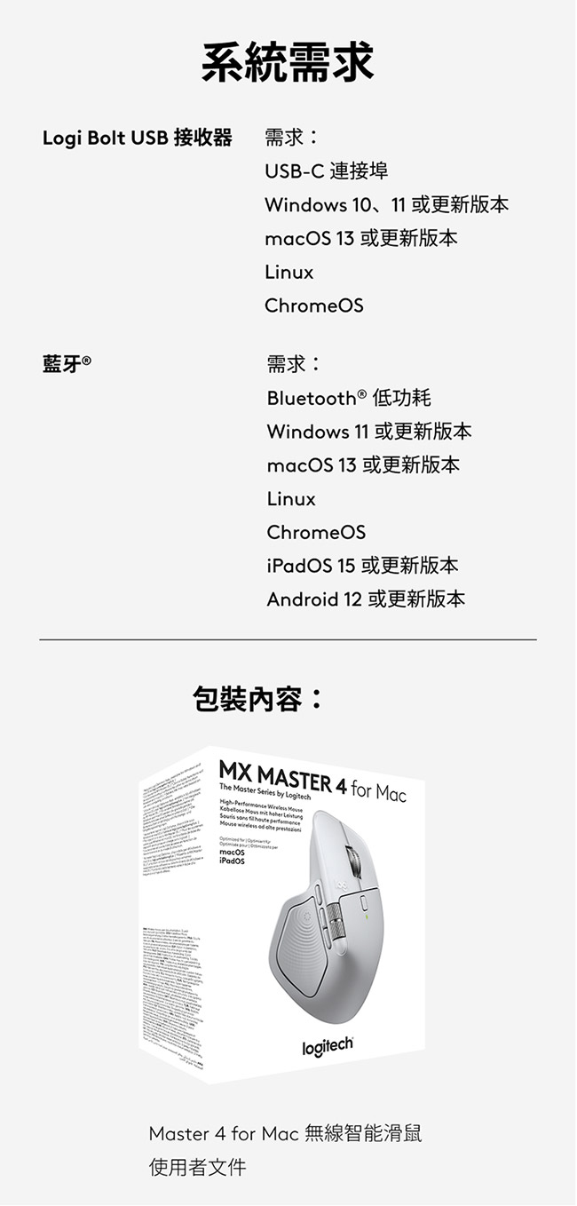 Logitech 羅技|MX Master 4 For Mac 無線智能滑鼠 珍珠白