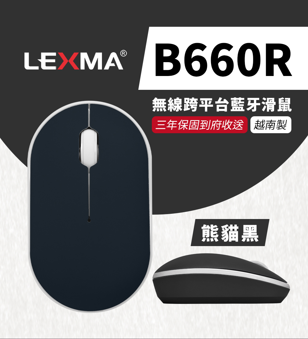 LEXMA 雷馬|B660R 無線跨平台藍牙滑鼠 熊貓黑