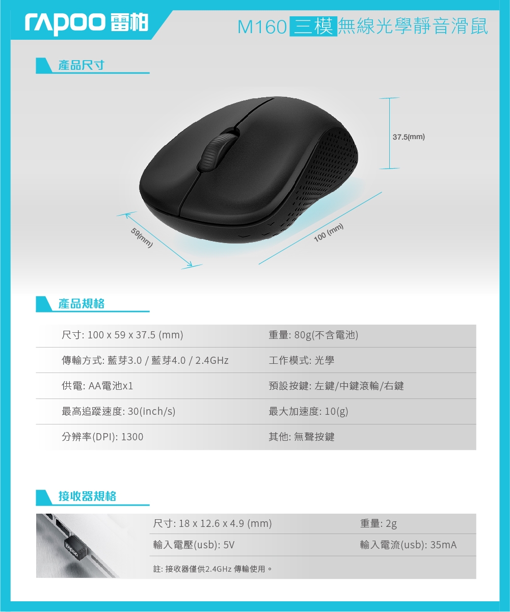 【Rapoo 雷柏】M160 三模無線光學靜音滑鼠