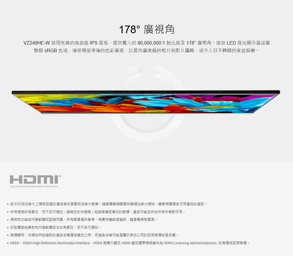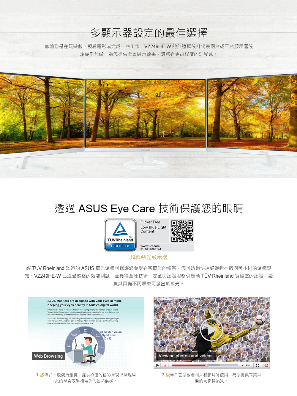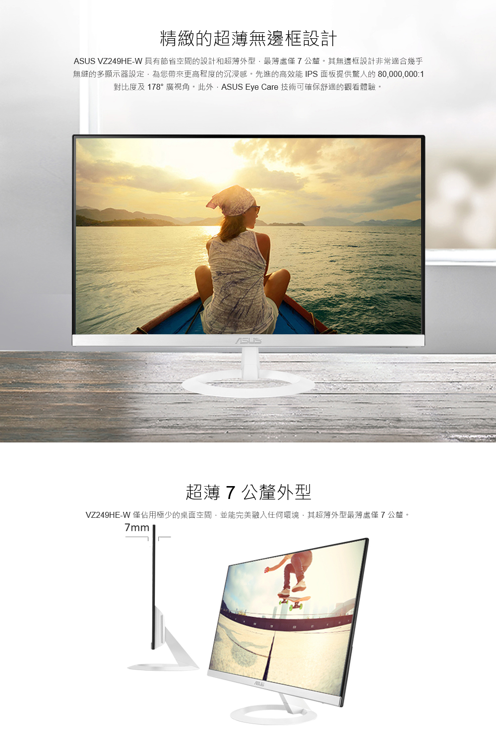 ASUS 華碩|VZ249HE-W 24型 IPS 護眼美型螢幕 白色
