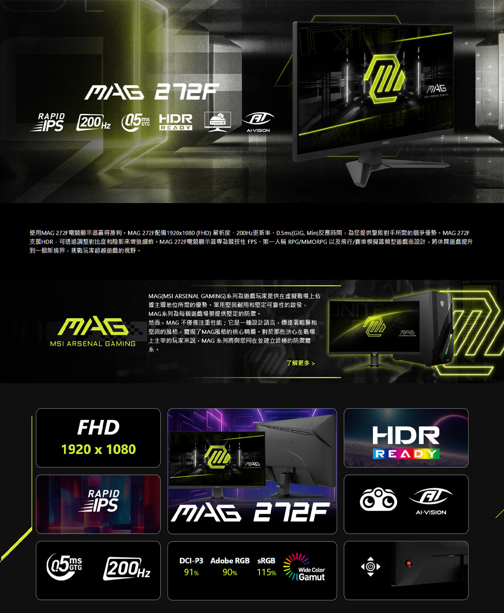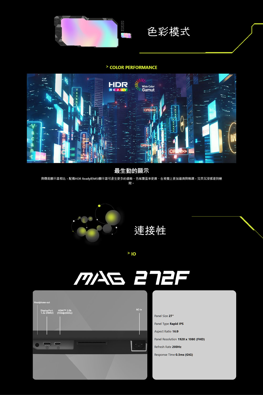 MSI 微星|MAG 272F 27型 IPS 夜視黑平衡電競螢幕