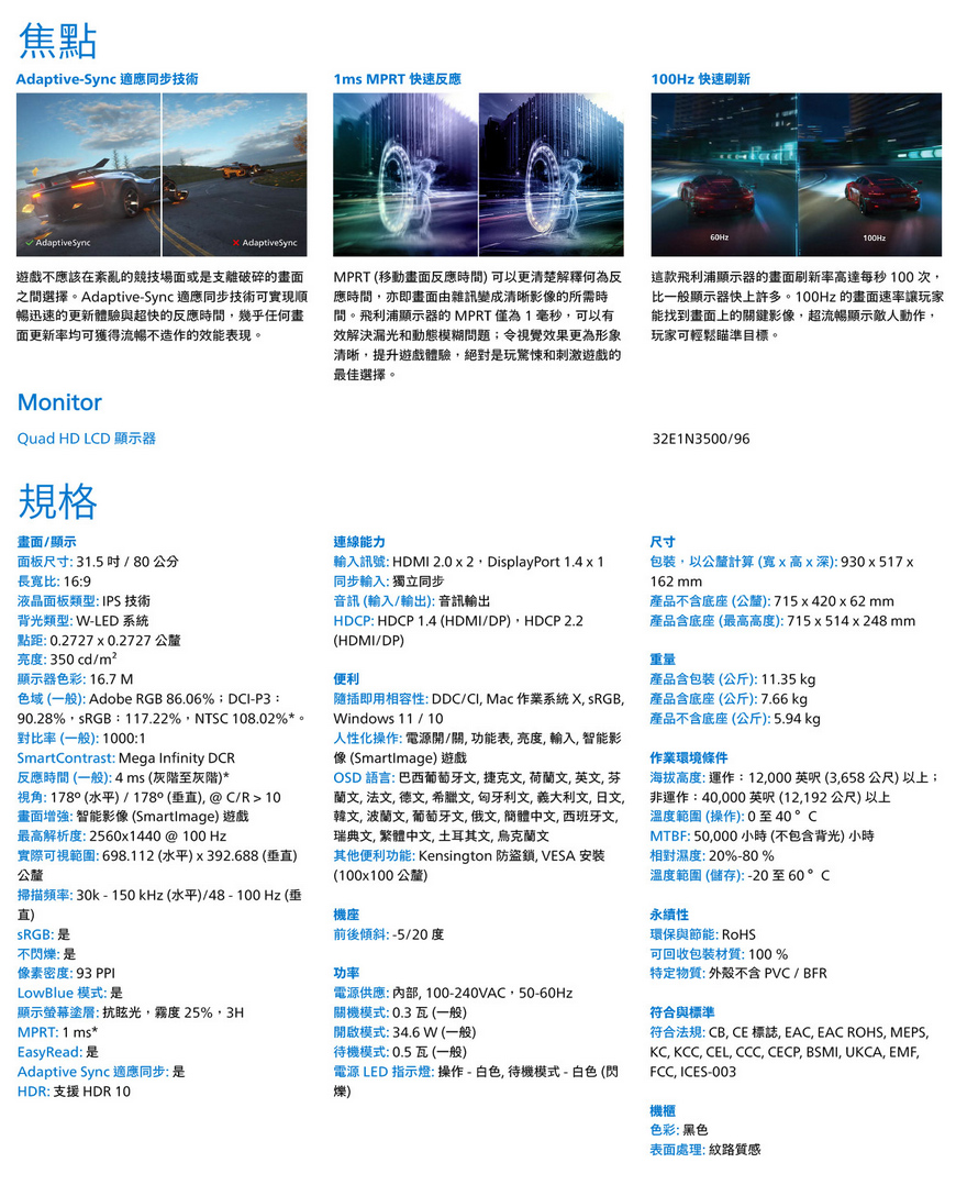 ★7天猶豫期非試用期,7天內尚未決定是否購買本商品,切勿拆封與破壞原廠外盒包裝。 ★商品一經拆封或使用,等同商品價值已受損,僅能以福利品出售,若非商品本身瑕疵而需退換貨,須收取價值損失之費用(回復原狀、整新費、安裝配送費等,約商品售價的10~30%不等之費用),請先確認訂購商品無誤,再行開機/使用,以免影響您的權利,祝您購物順心。(如原廠判定為人為損壞,本公司有權拒絕退換貨申請) ★若因產品故障要退換貨商品,必須為無髒汙、無損傷之狀態且包裝完整(含商品主機、包裝內外盒不得刮傷破損,配件/隨附文件與贈品不得缺件)。 ★若因新品故障要退換貨商品,新品瑕疵判斷將由原廠工程人員檢測。如對收到商品有疑慮,建議開箱過程全程錄影,以確保自身權益。 ★如需施工團隊特殊配送或安裝的大型家電(電視、冷氣、冰箱、洗衣機等)收到消費者付款之訂單需求後,將會派發給運送與施工團隊,當派單完成後,訂單狀態為出貨中,此狀態不一定是實際完成出貨,僅代表發單至施工團隊,實際以施工團隊與訂購者電話約裝的內容為主。 在3-5天工作天內,施工廠商將進行聯絡之約裝動作。 ★遊戲片(含軟體)商品一經拆封視同購買,無法退換貨。 ※ 賣場商品與形象情境圖僅供參考,以實際出貨商品為主 ※ 出貨提醒:如遇不可抗外力,例如颱風、豪雨、工廠或海運空運罷工等天災與其他難以抗拒的人為事件,致使貨運公司未上班營運,網購商品將會延後出貨。 BSMI編號:R33037 國際條碼:4711514790788