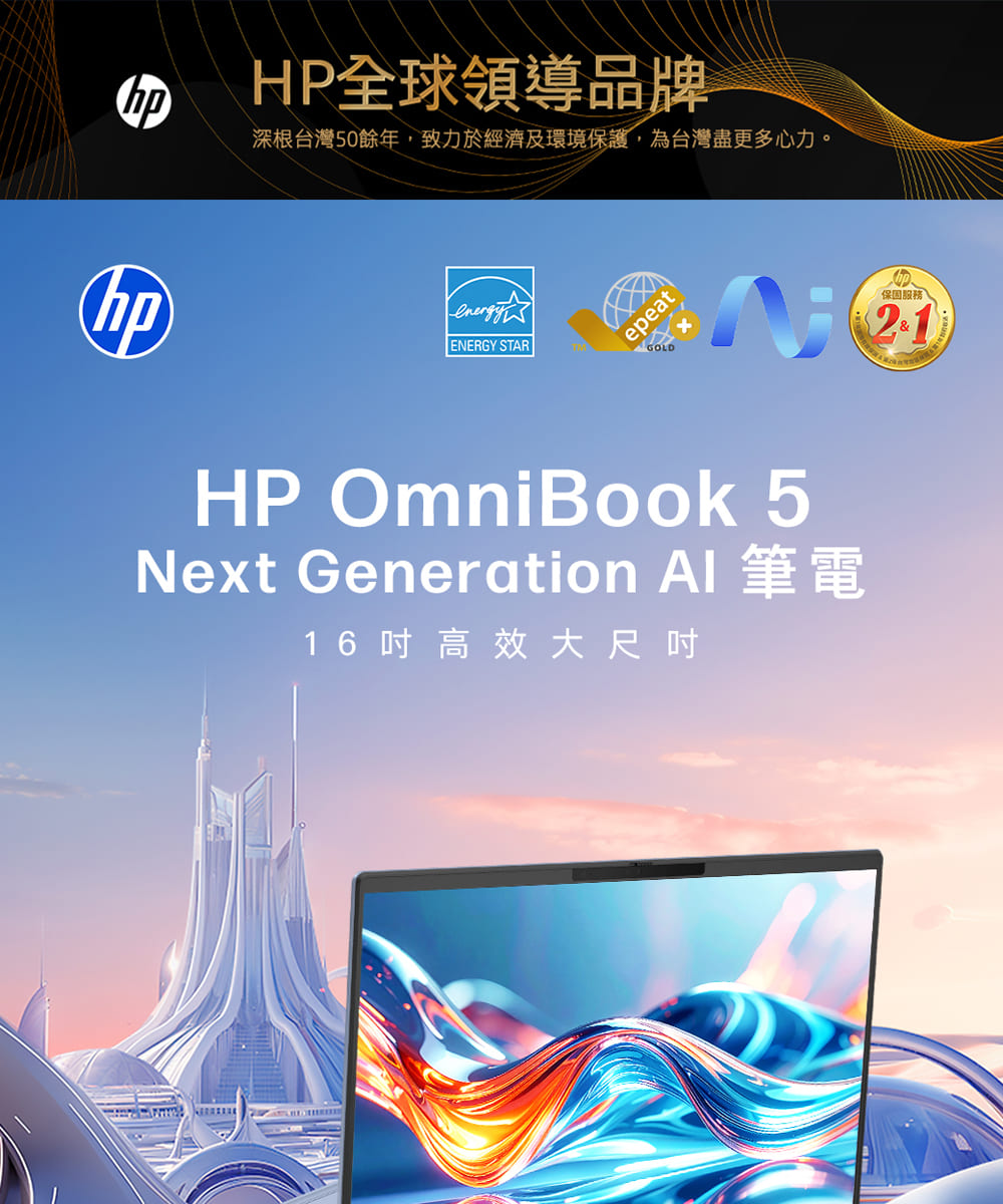 【HP 惠普】OmniBook 5 NGAI 16-ag1033AU 16吋 R5 筆電|天空藍