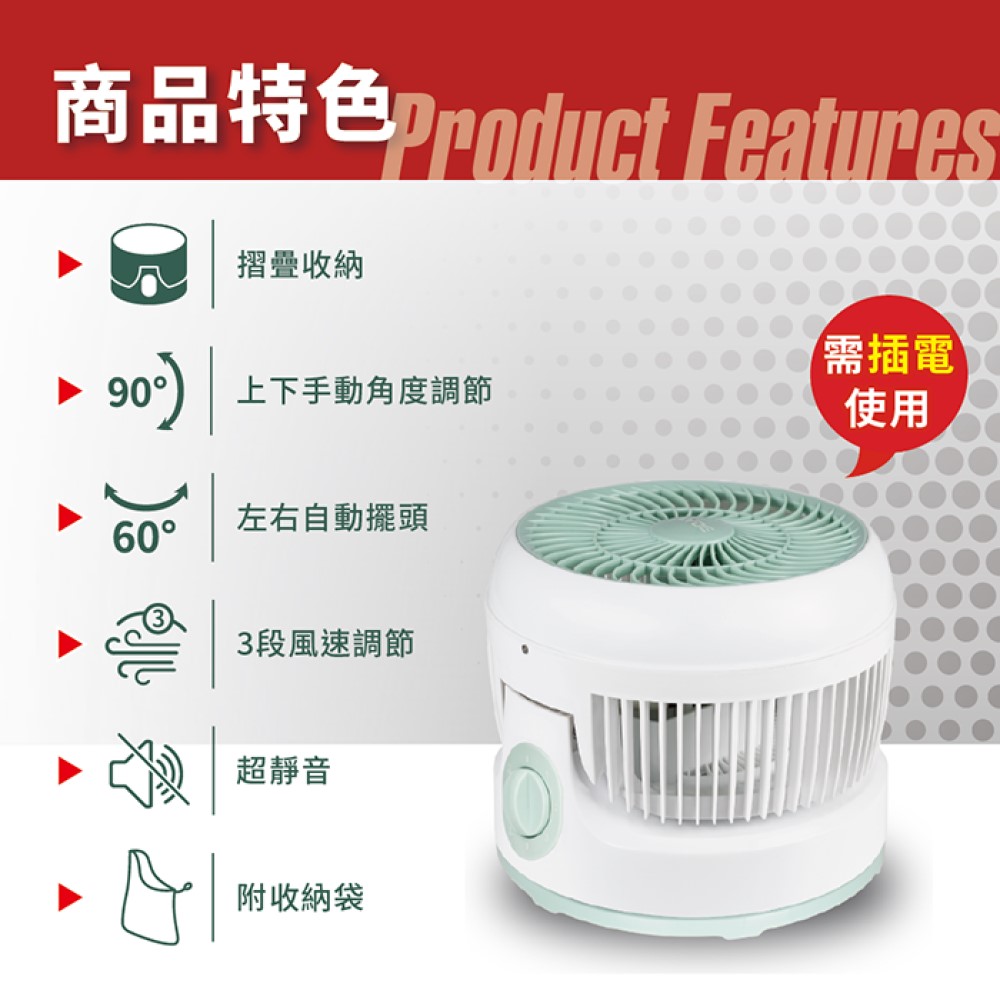 • 特色:左右60°自動擺頭,加強循環對流