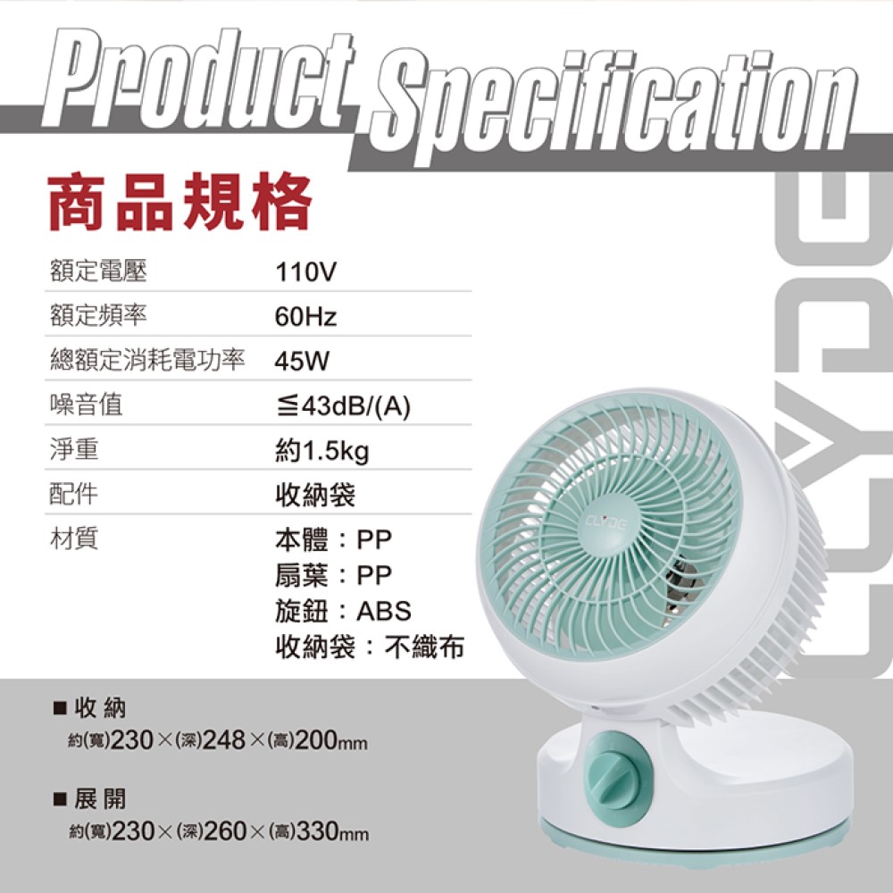 【CLYDE 克萊得】CD-EF0570 8吋 摺疊收納循環扇