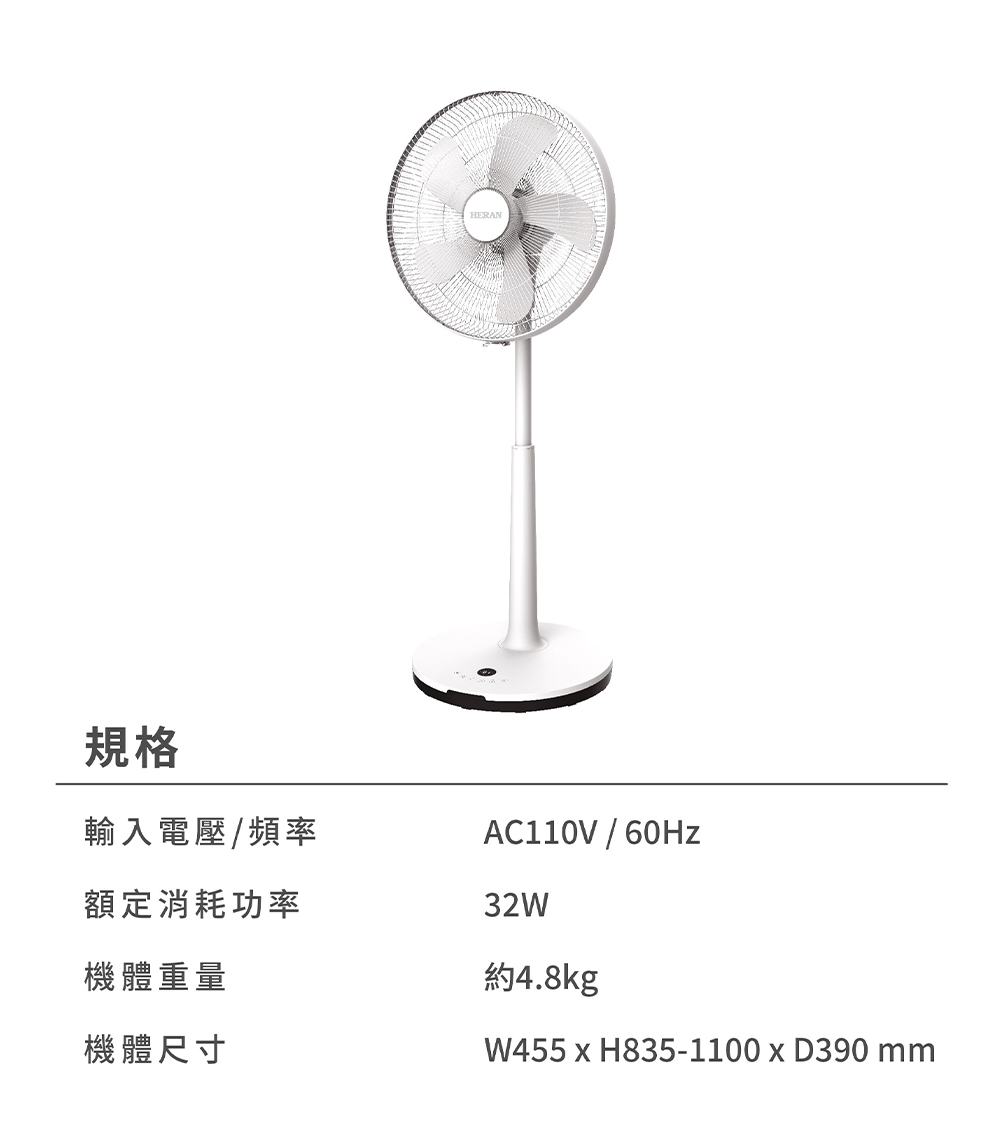 HERAN 禾聯|16吋 智能變頻抑菌DC風扇 HDF-16AH510(M)