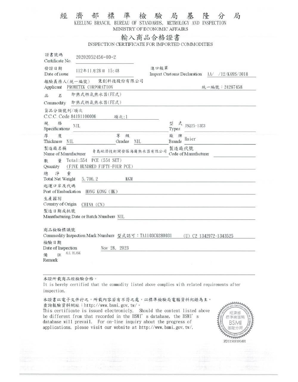 BSMI編號:UC21342972 國際條碼:8809283112101